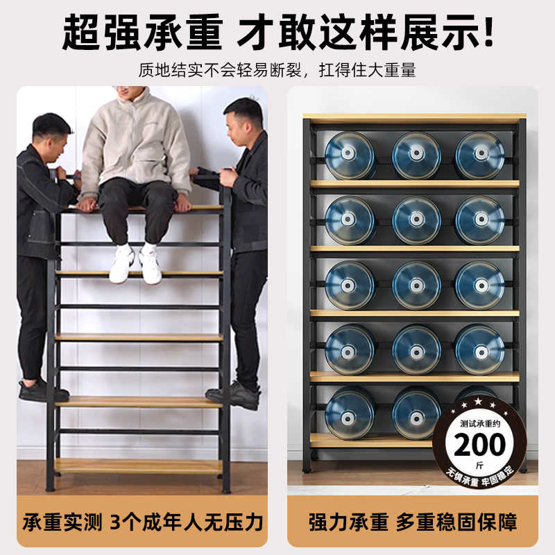 书架落地储物架子一体靠墙货架玩具收纳架家用多层书柜铁艺置物架