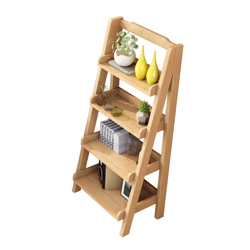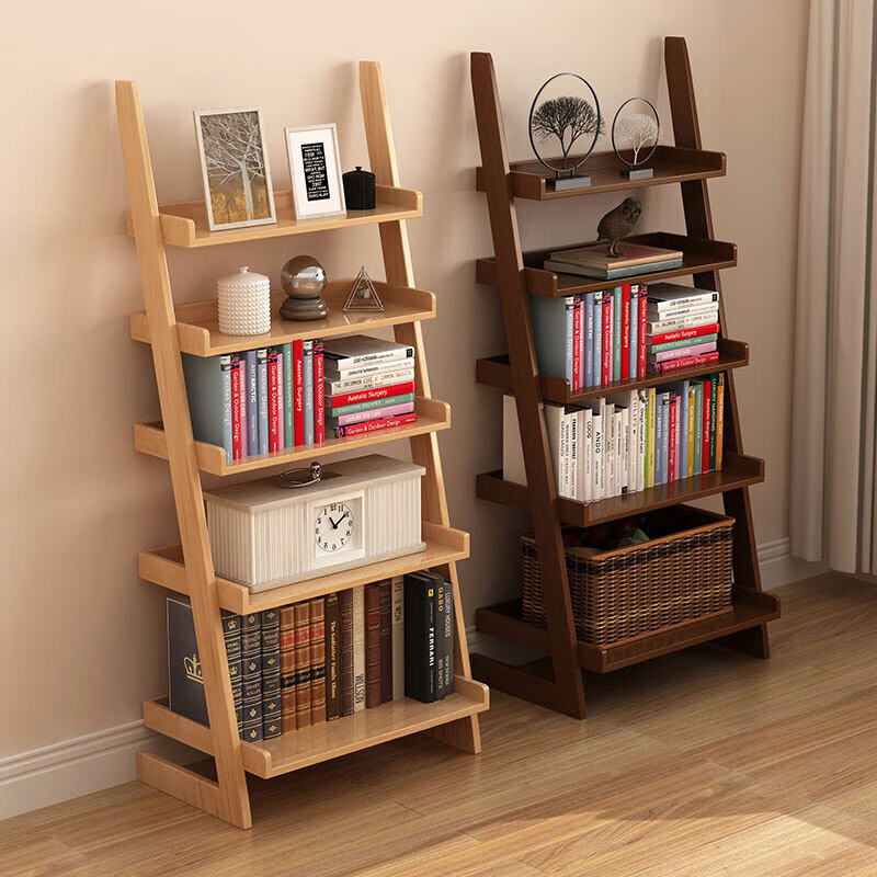 全实木梯形书架置物架家用卧室客厅现代北欧学生多层靠墙简易书柜