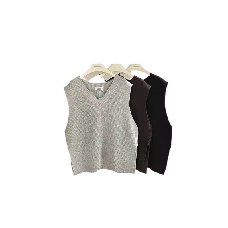 初打十三行秋季新款毛衣百搭羊毛叠穿神器V领针织宽松慵懒马甲女