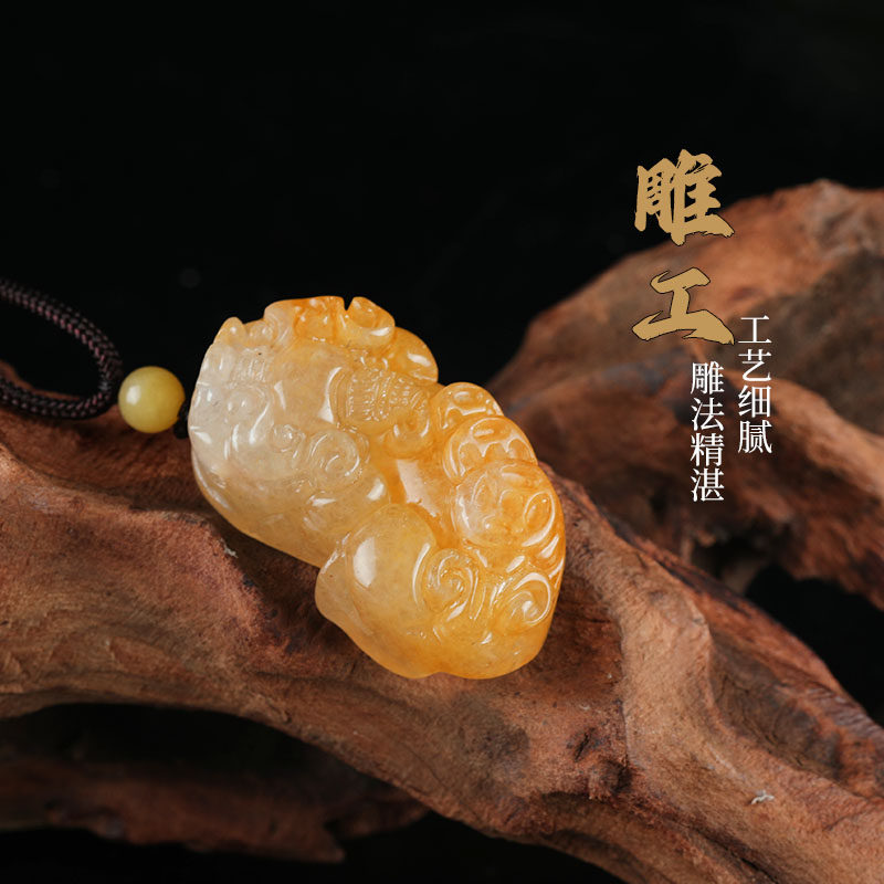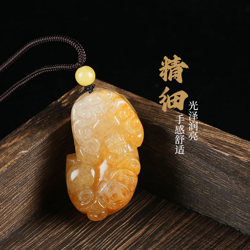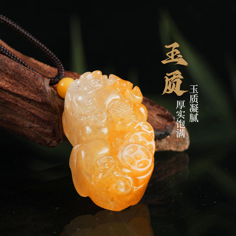 唐今玉天然新疆金丝玉金钱貔貅玉石吊坠戈壁玉黄玉挂件玉器吊坠