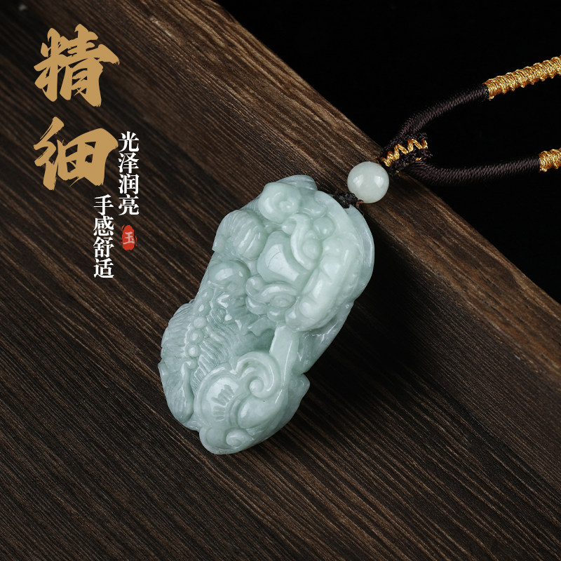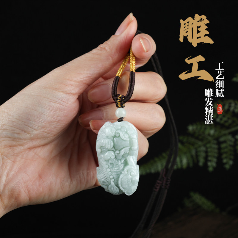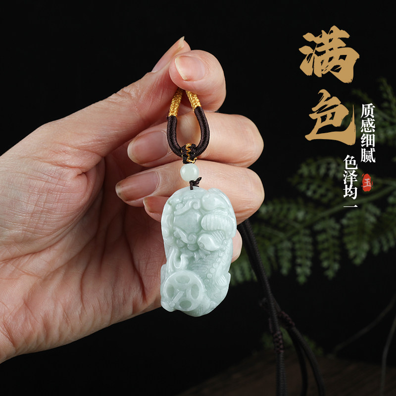 唐今玉天然缅甸A货翡翠如意金钱霸王貔貅糯种玉石吊坠通财皮丘男