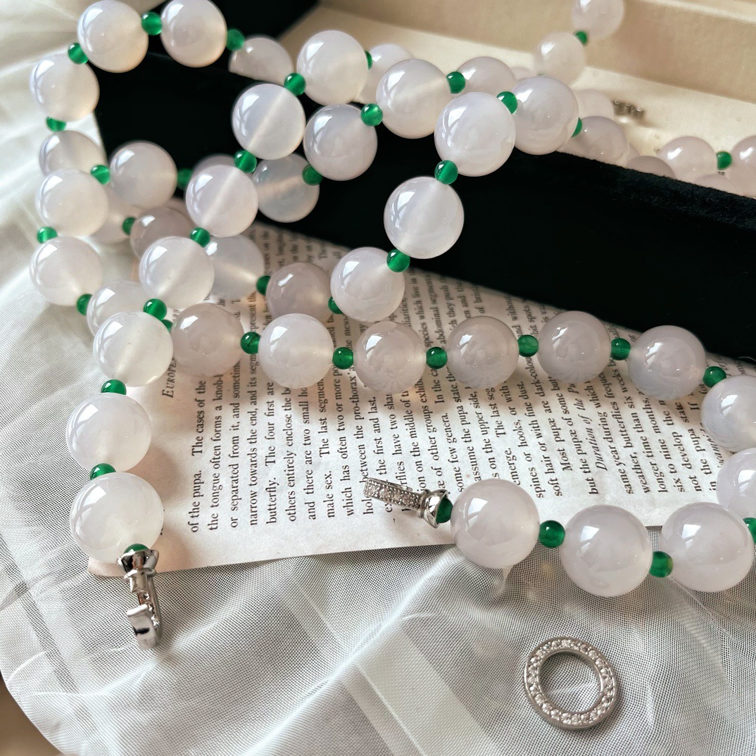 新中式复古大颗粒天然白玉髓天然绿玉髓玛瑙撞色项链女锁骨链颈链