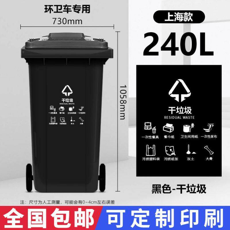 桶大容量街道120大型小区四色大号垃圾桶环卫带轮干湿加厚240升