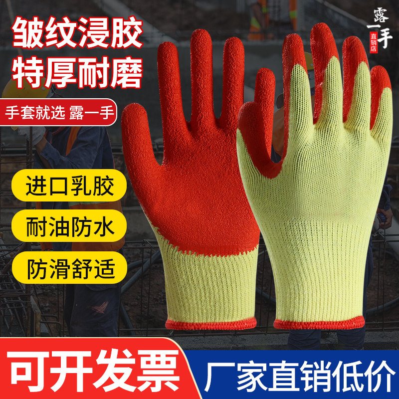 劳保手套工作耐磨加厚橡胶乳胶带胶胶皮浸胶防割防滑防水工地干活