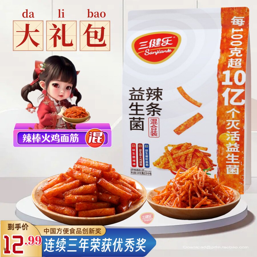 三健乐益生菌辣条320g大礼包休闲零食川香麻辣棒辣丝火鸡面素牛排