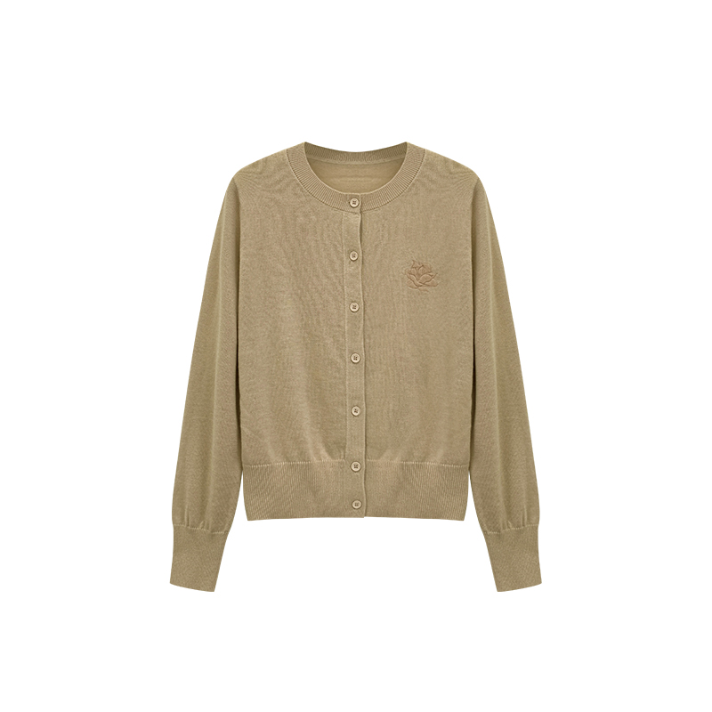 【橙庐】原创210718玉兰花绵羊毛针织开衫 长袖气质纯色时尚百搭