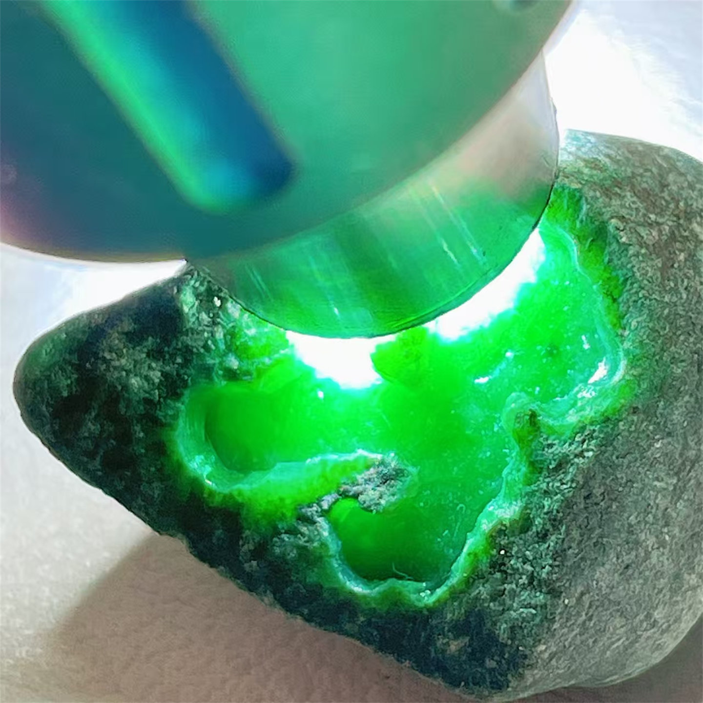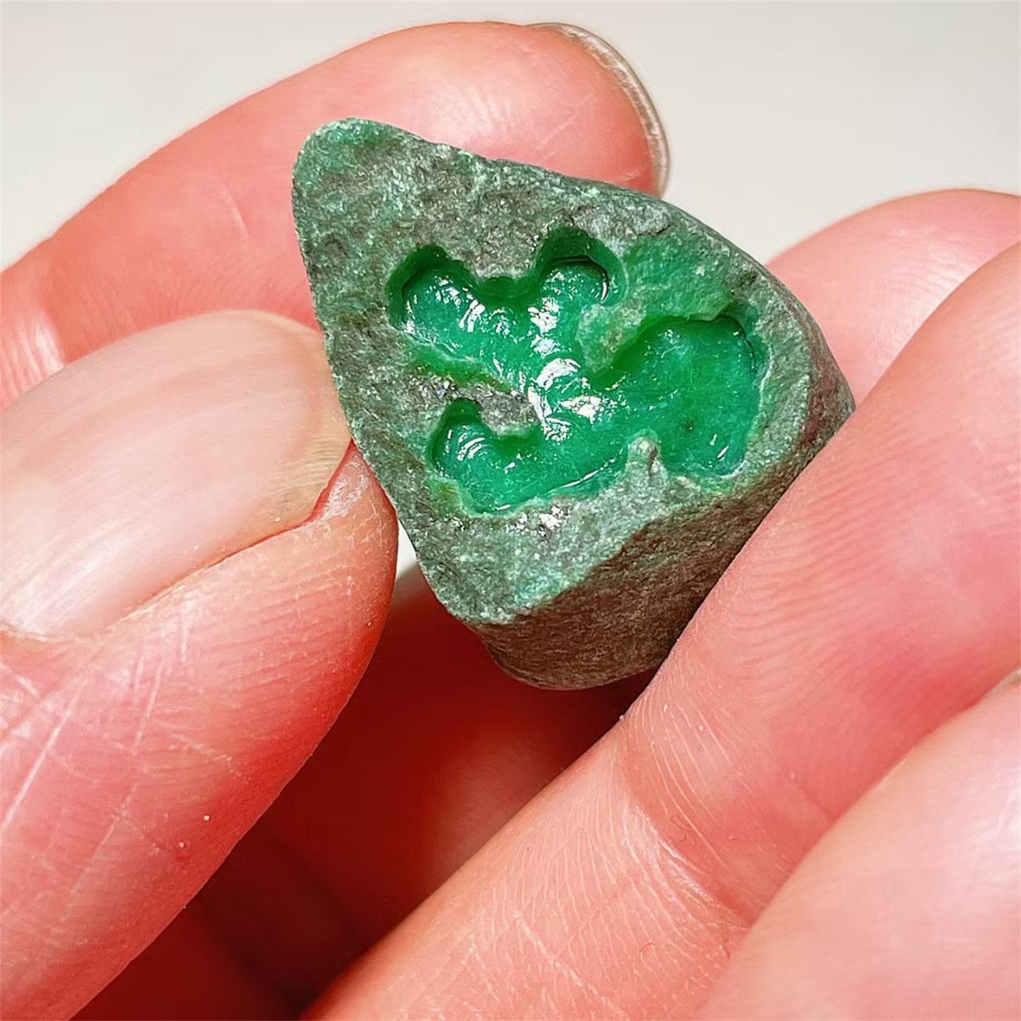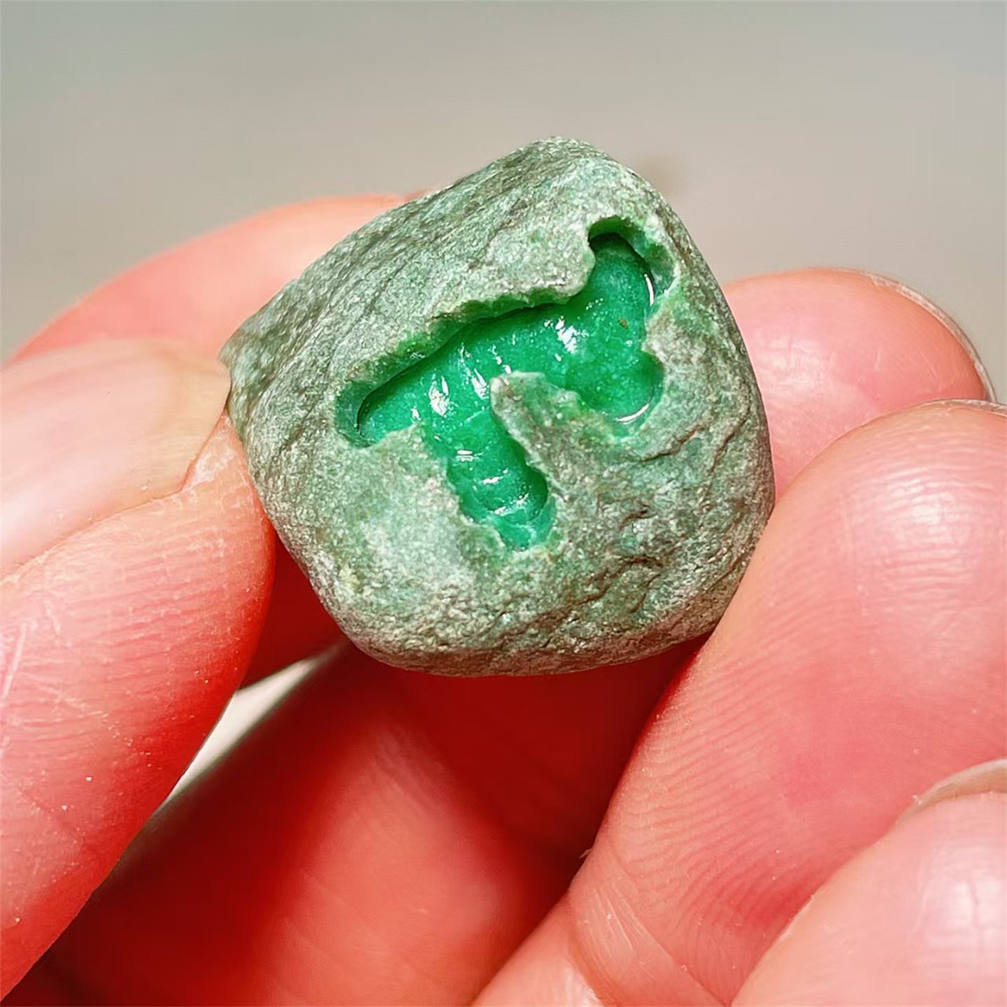 A48 精品缅甸天然翡翠原石老坑后江场口色料戒面料 重11克