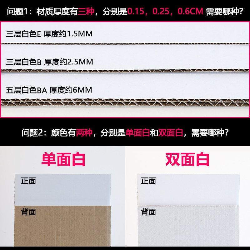 白色瓦楞纸板2米大 手工厚硬纸箱纸皮卡隔板垫板客制化纸板箱