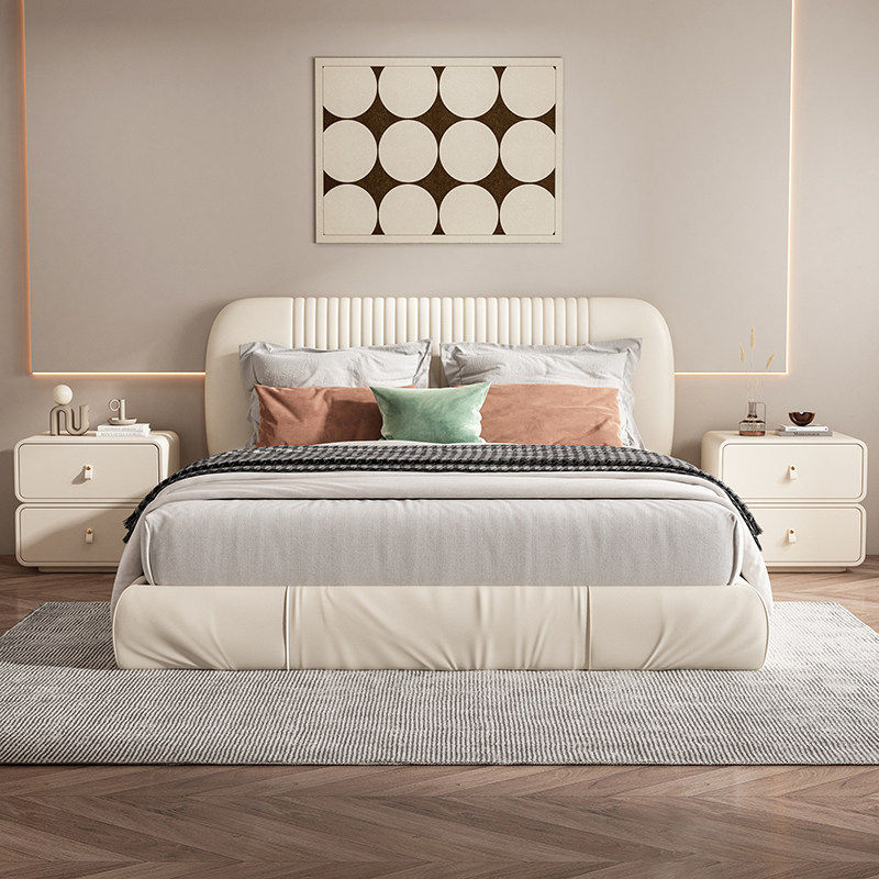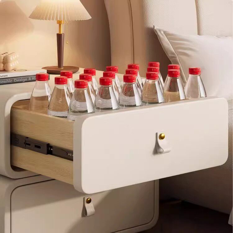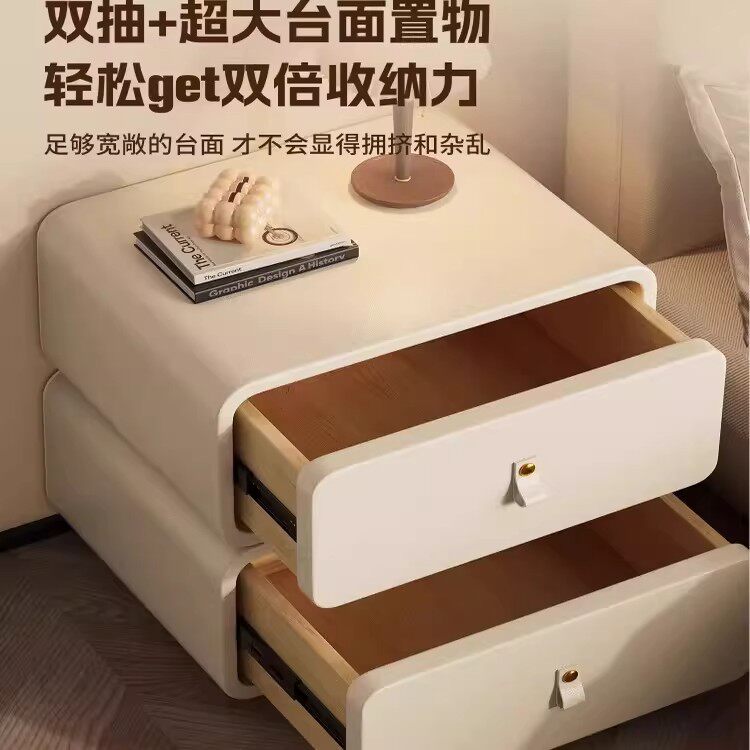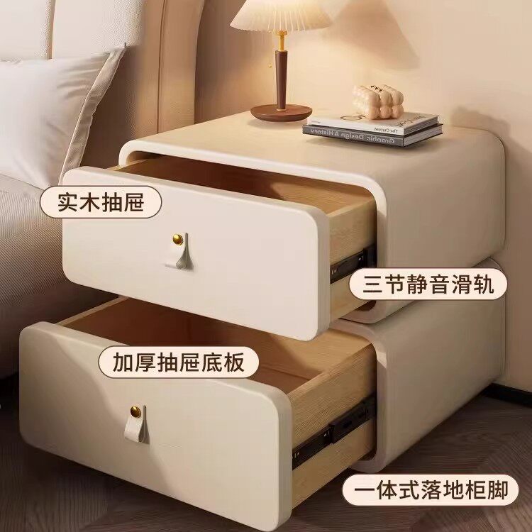 全实木床头柜家用现代简约创意方糖圆角轻奢皮质卧室收纳柜奶油风