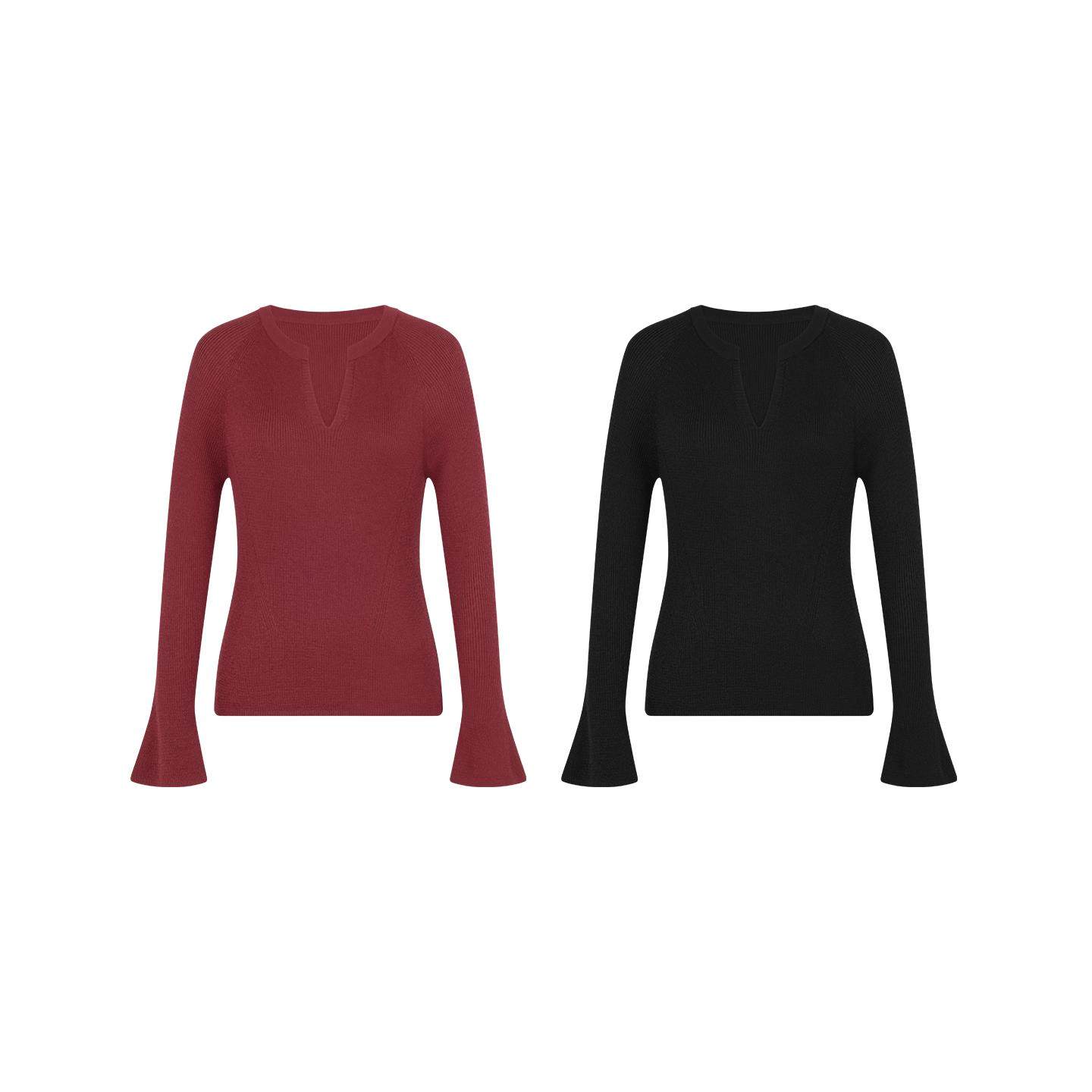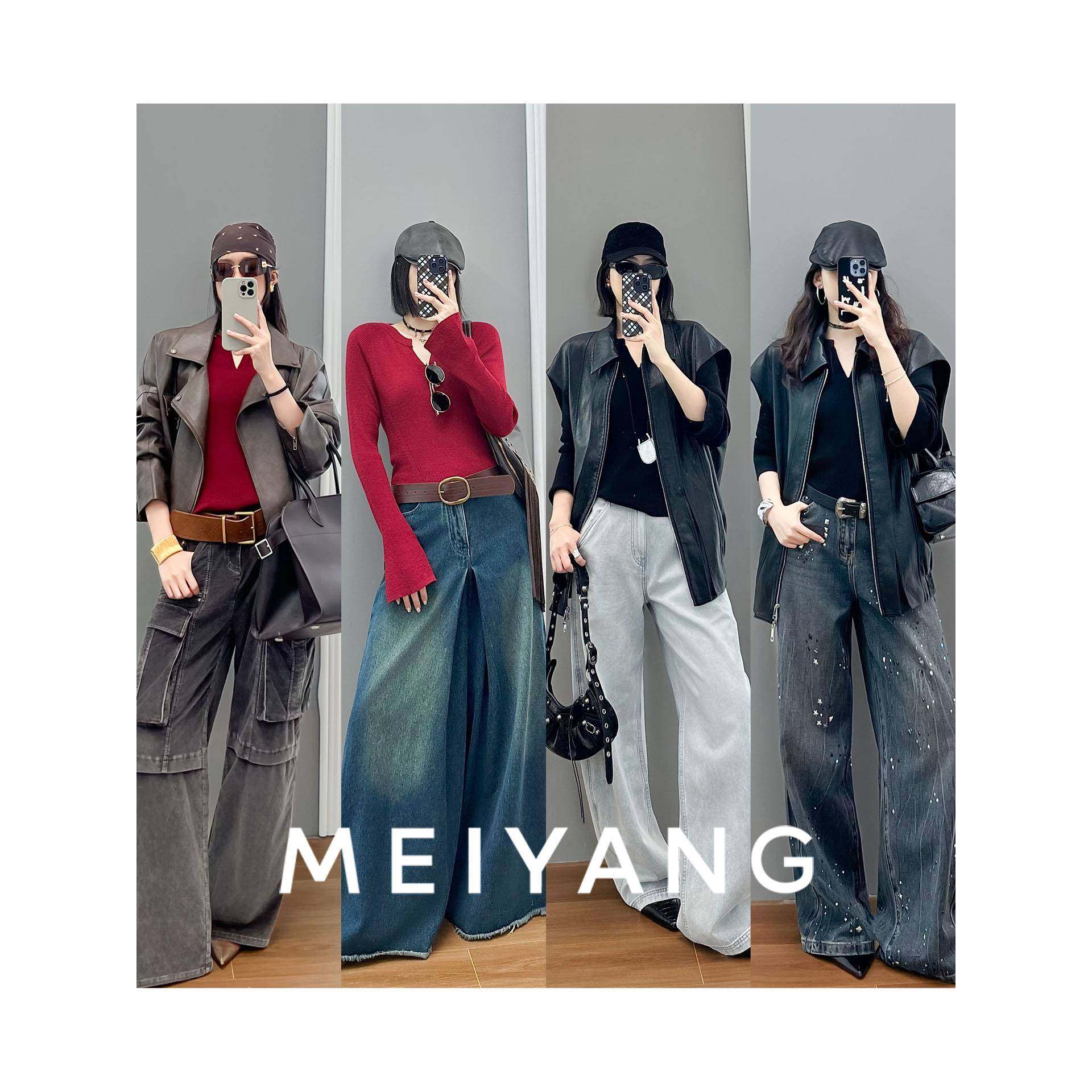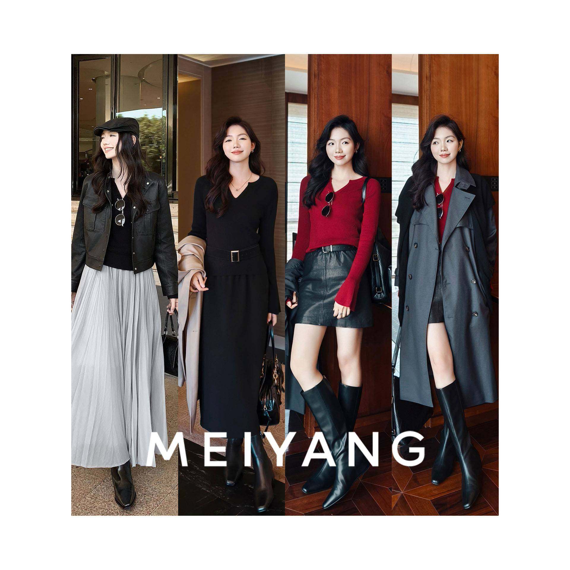 美洋MEIYANG 小薇针织衫 真丝羊绒_修身显瘦V领喇叭袖上衣-周一