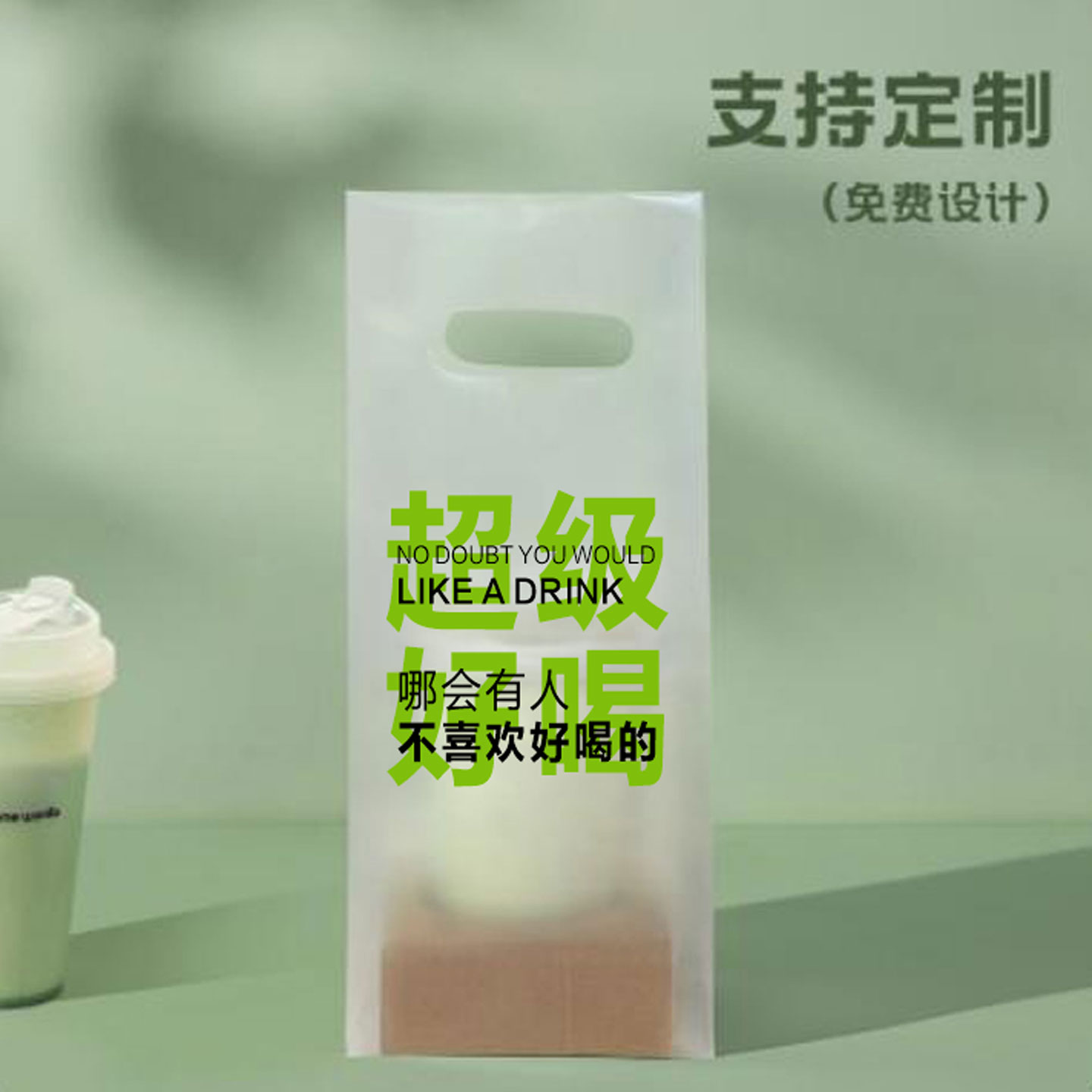 奶茶咖啡打包袋外卖饮品单双杯加厚一次性透明手提袋logo商用定制