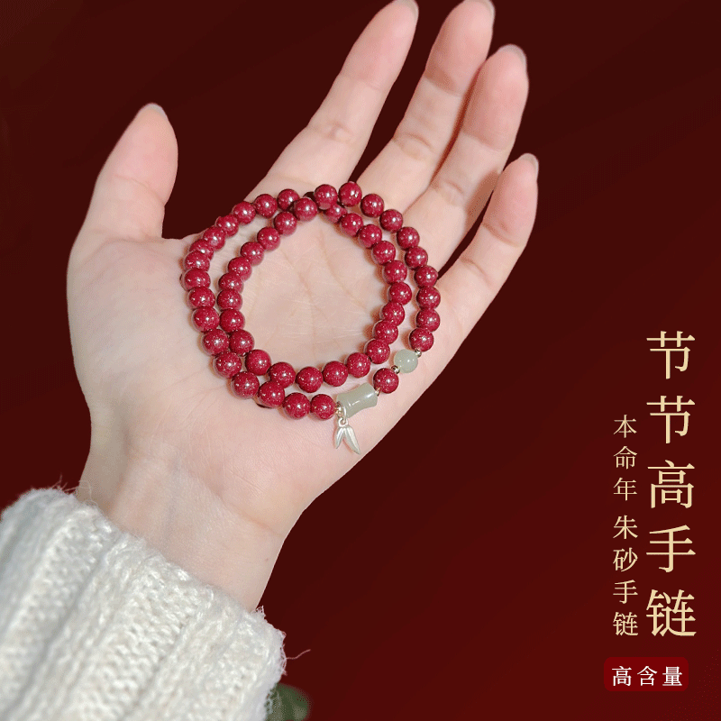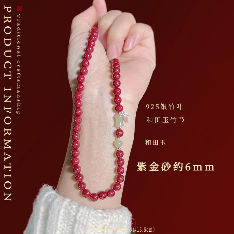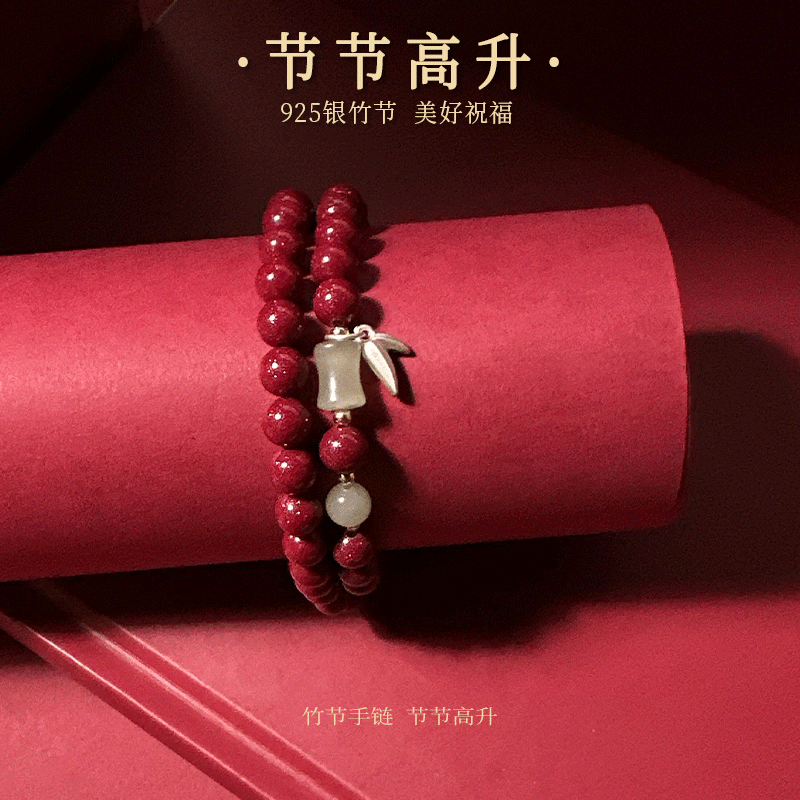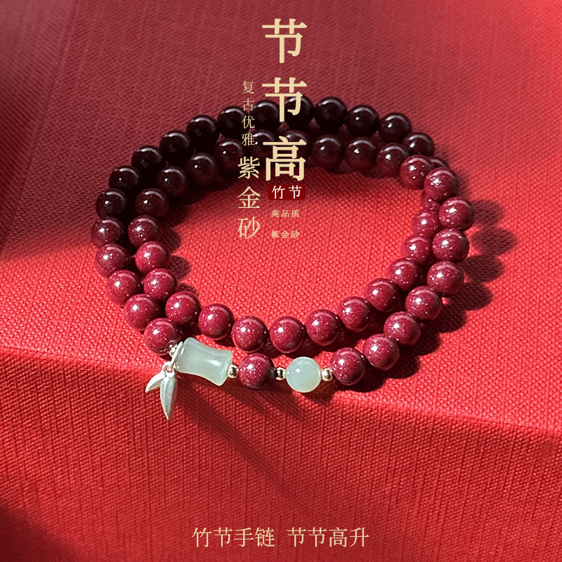 竹节手链朱砂银手饰女士红色马年本命年礼物竹子紫金砂手串多圈