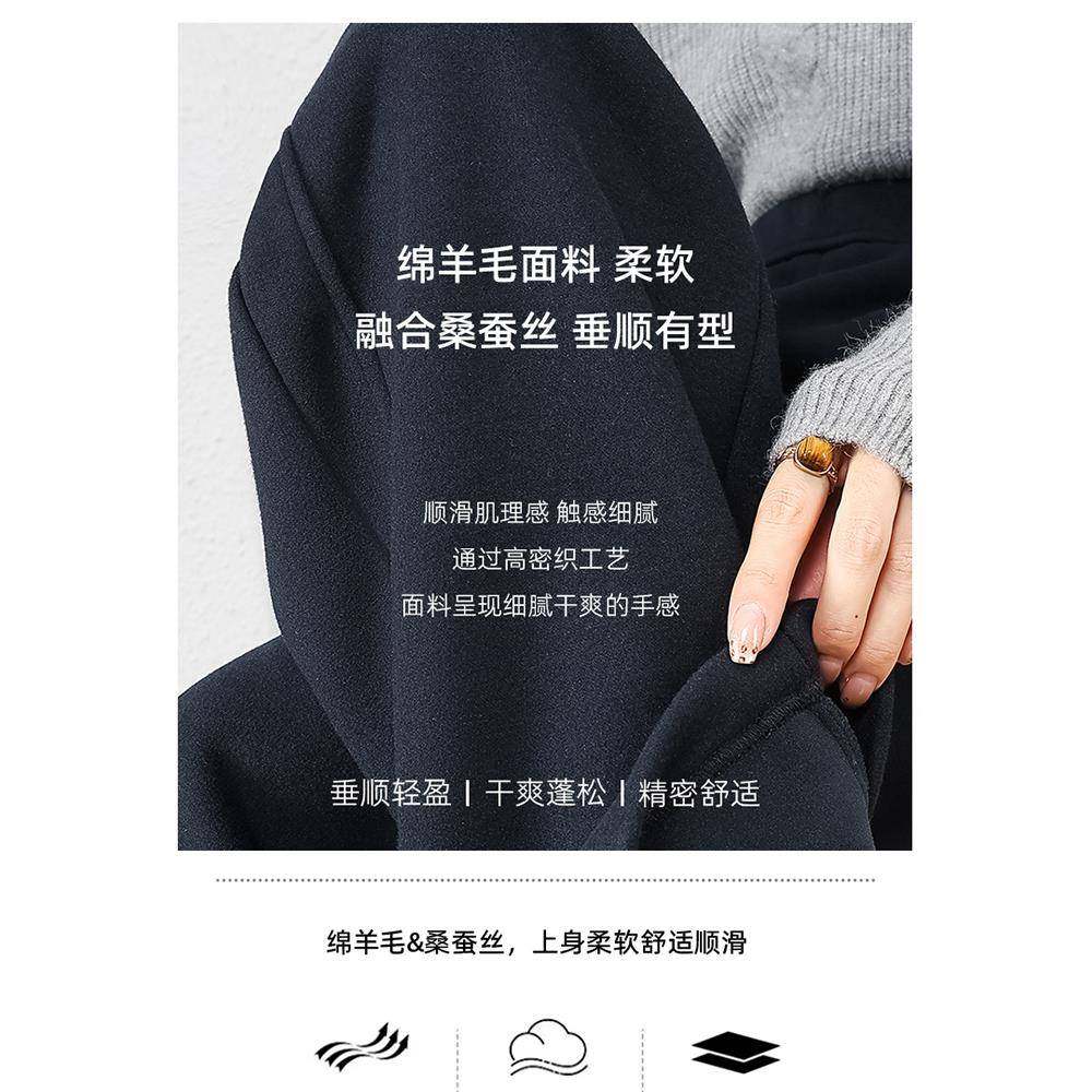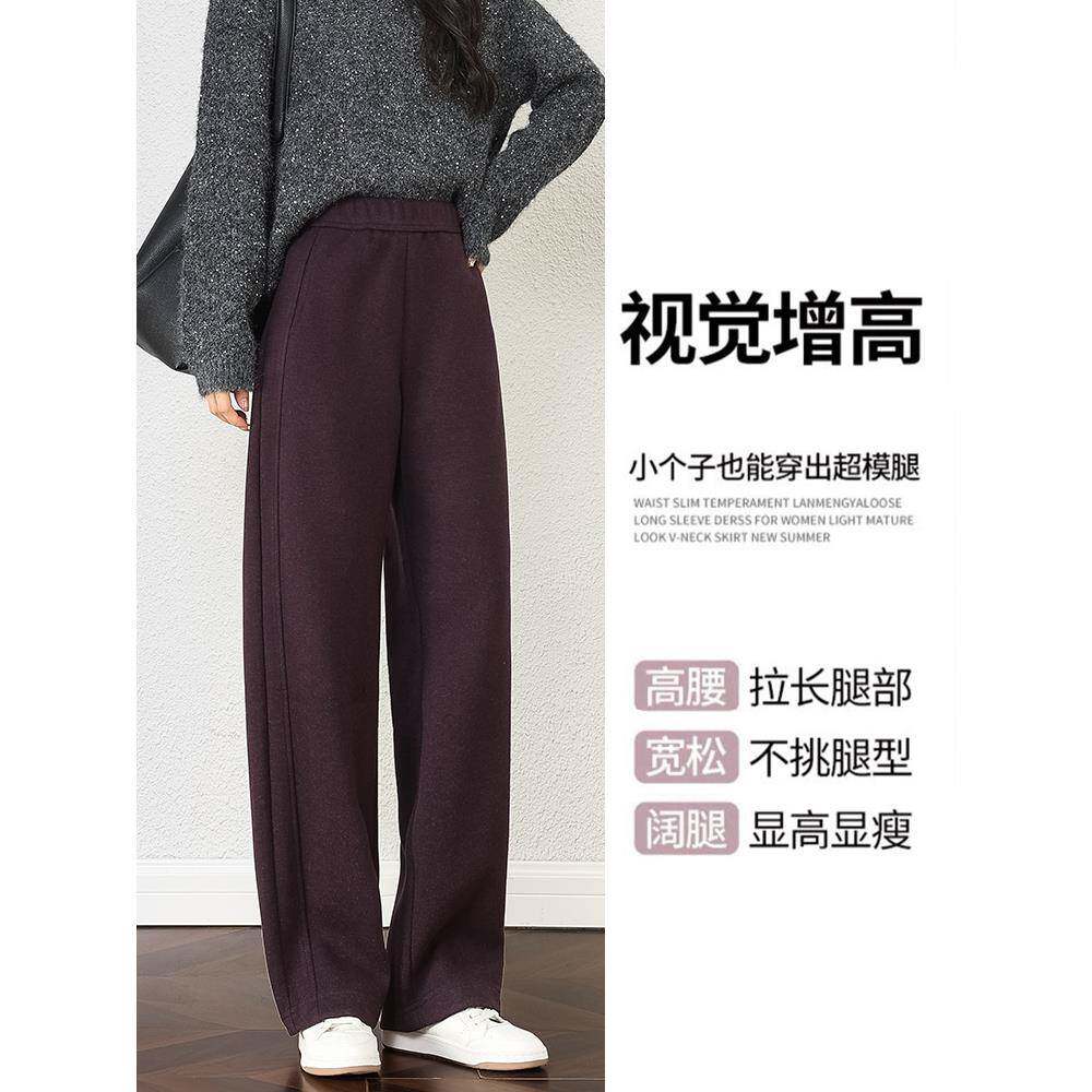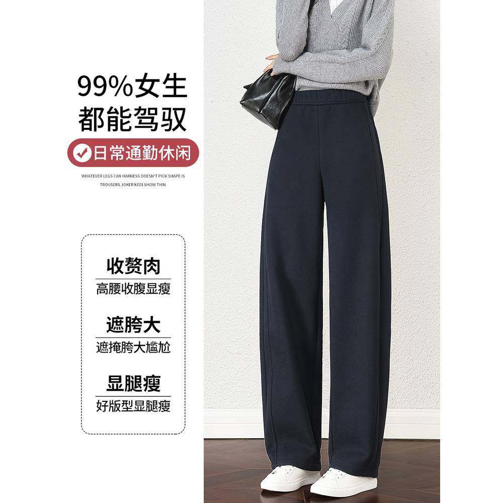 藏青色弯刀阔腿裤女秋冬2025新款加绒加厚羊毛直筒香蕉裤冬季裤子