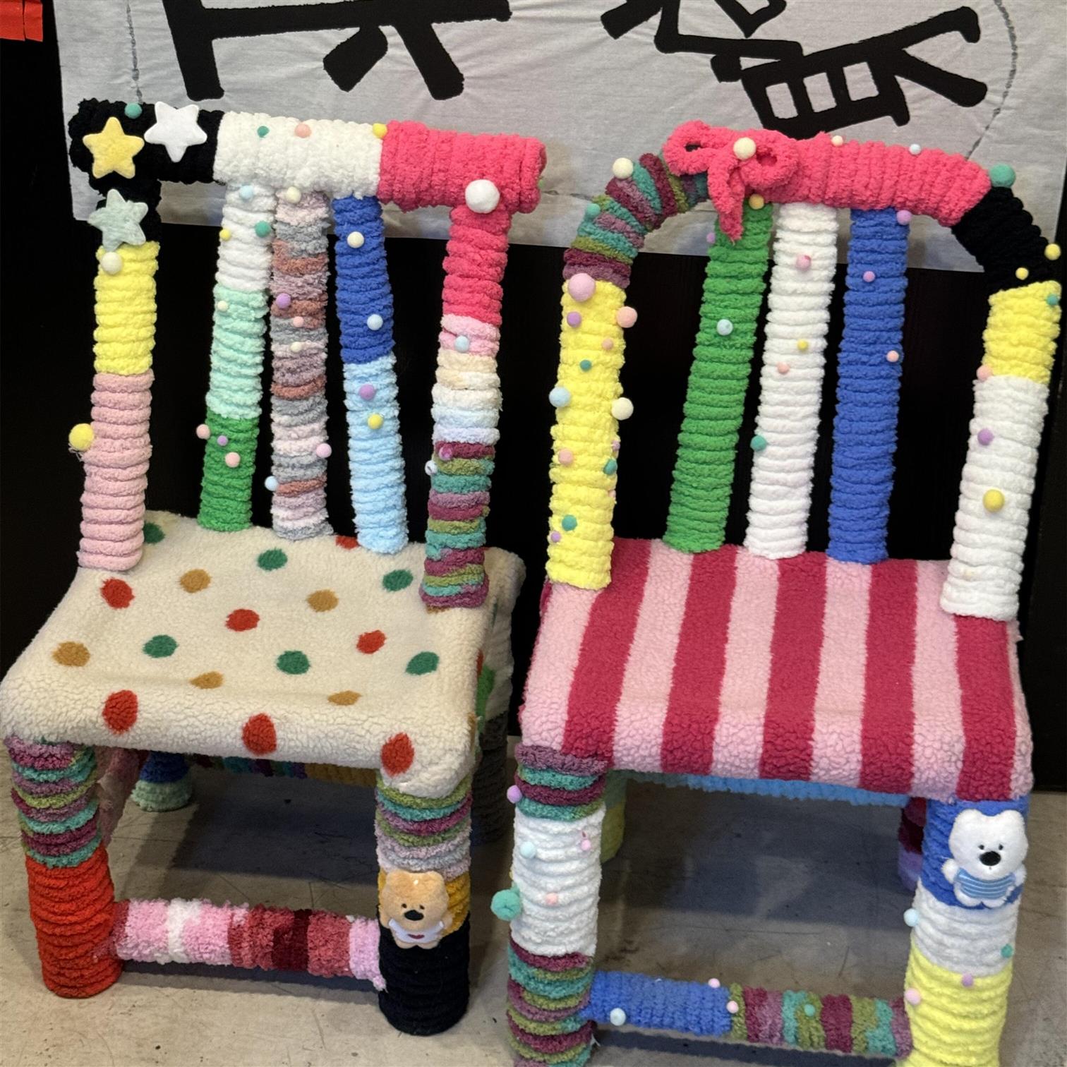 多巴胺家居小凳子改造毛线装饰diy材料包老旧家具翻新创意手工凳