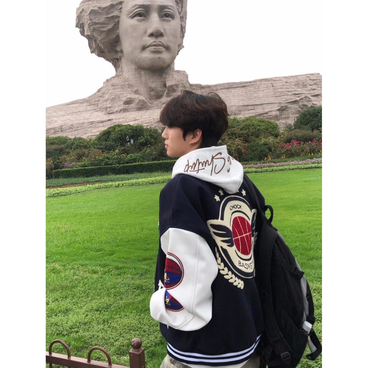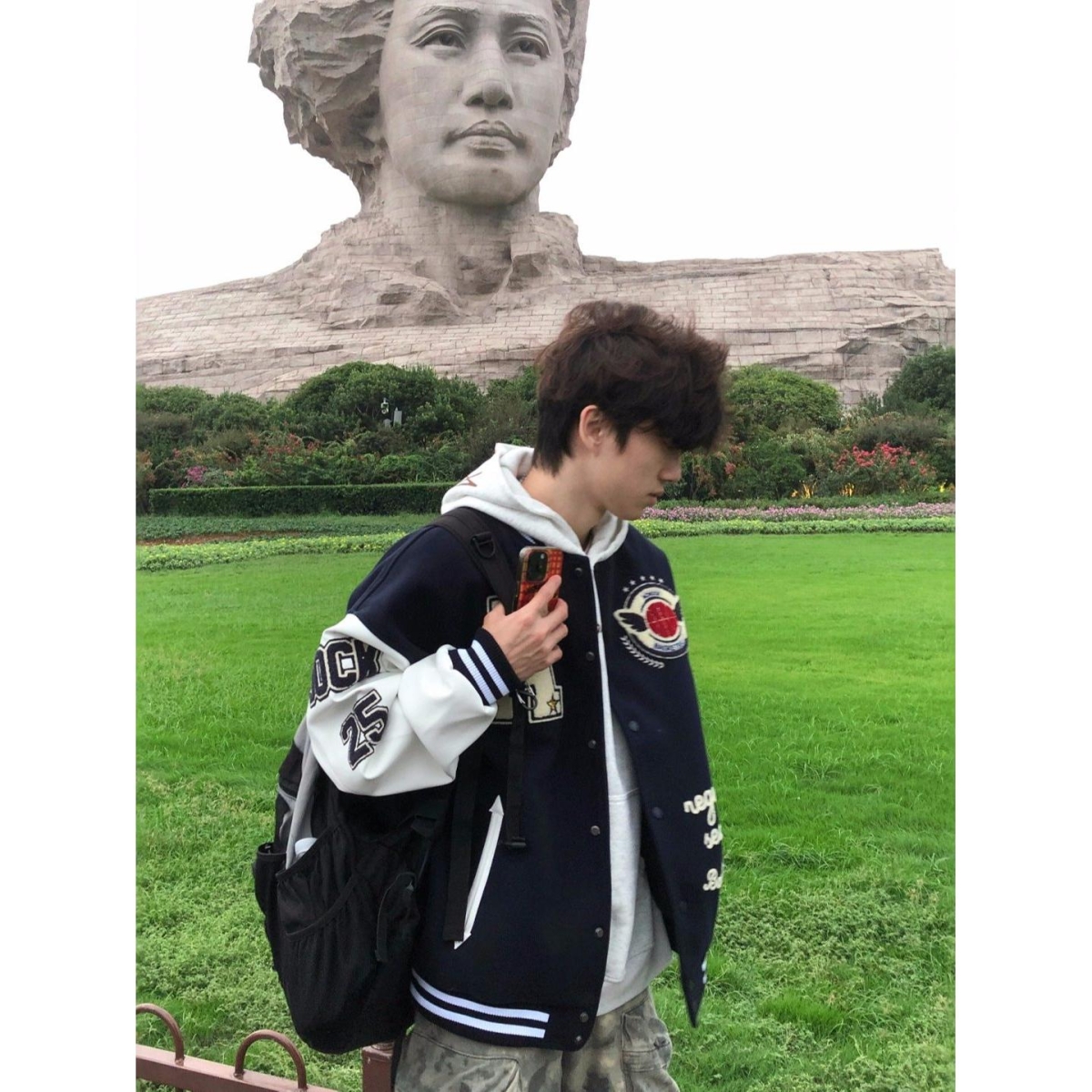 国潮美式毛巾绣字母棒球服外套男秋冬季夹棉加厚宽松百搭情侣上衣