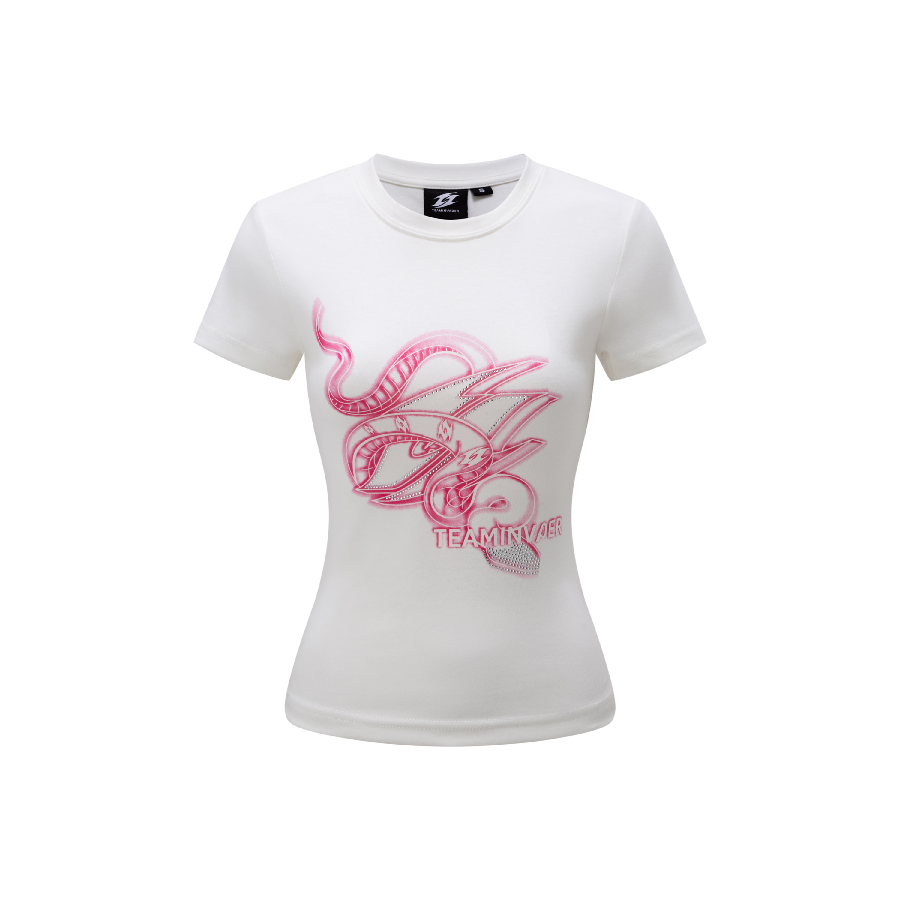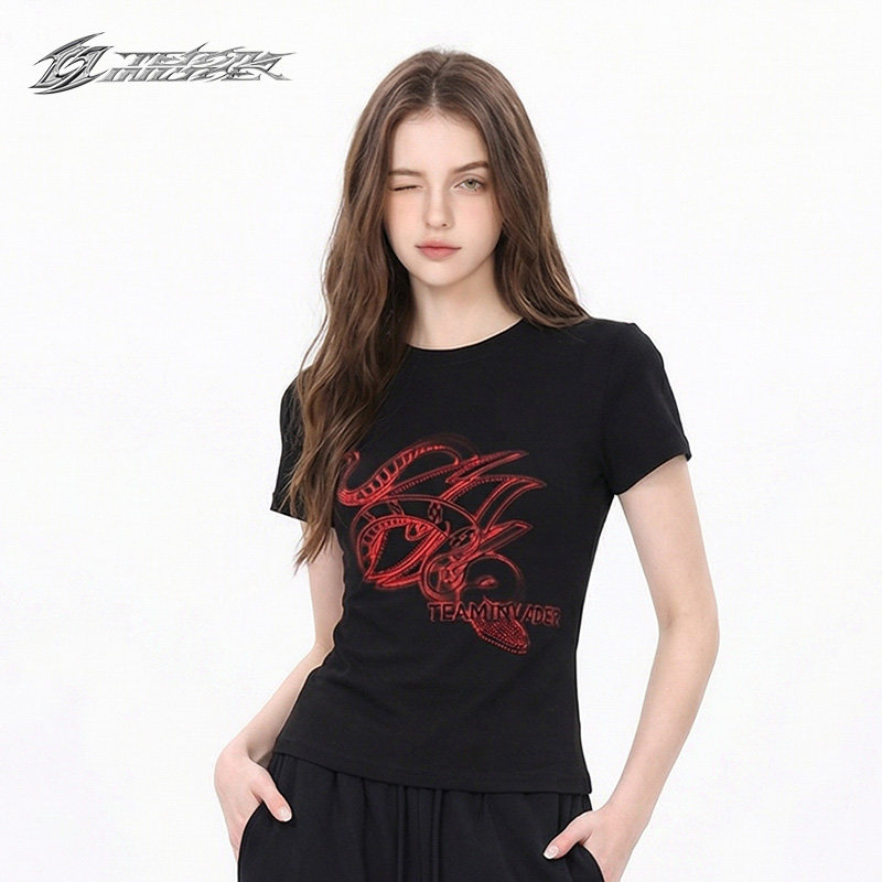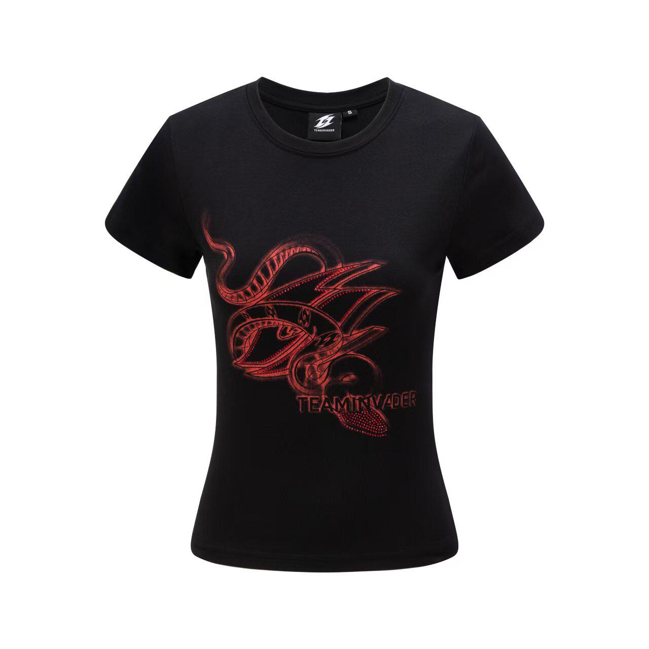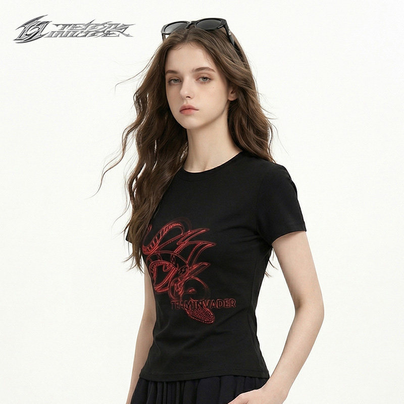 【Ti舞团】新款辣妹烫钻美式潮牌显瘦ins修身印花蛇标正肩短袖T恤