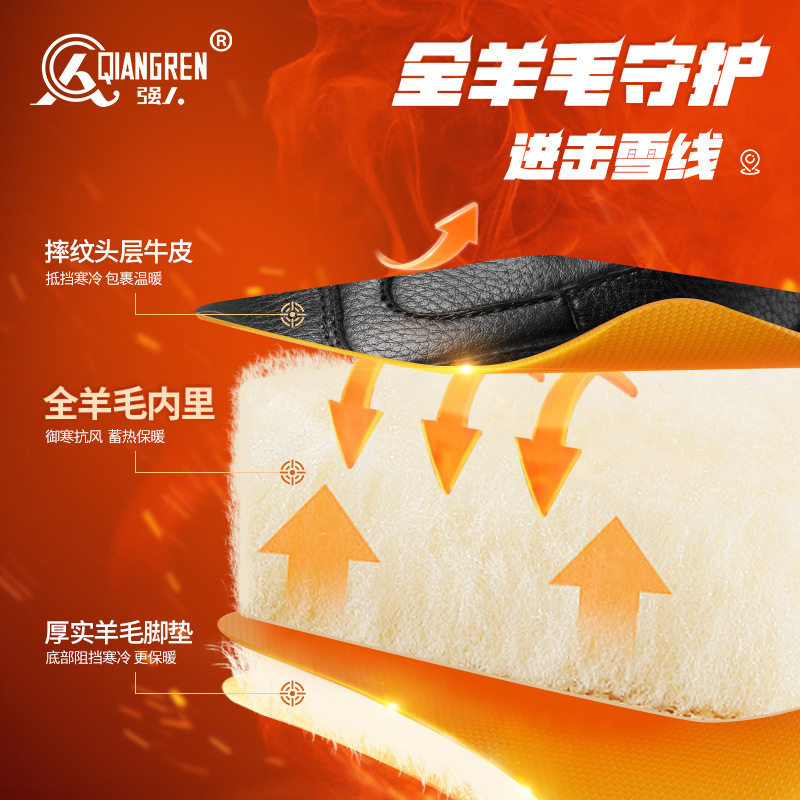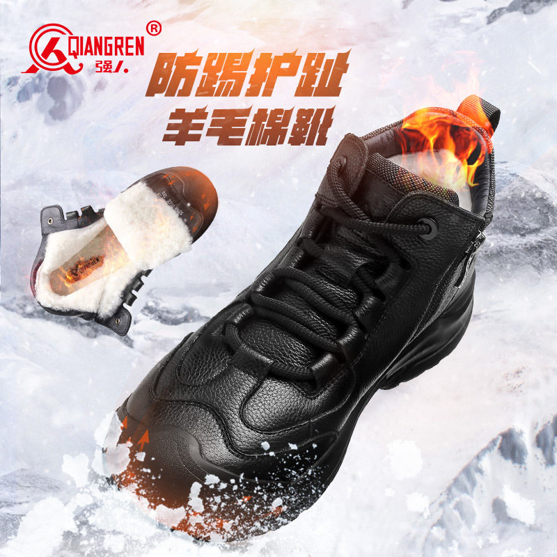 3515强人品牌正品男棉鞋冬季保暖户外登山鞋头层牛皮全羊毛高帮棉