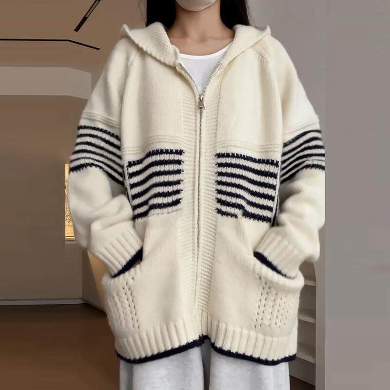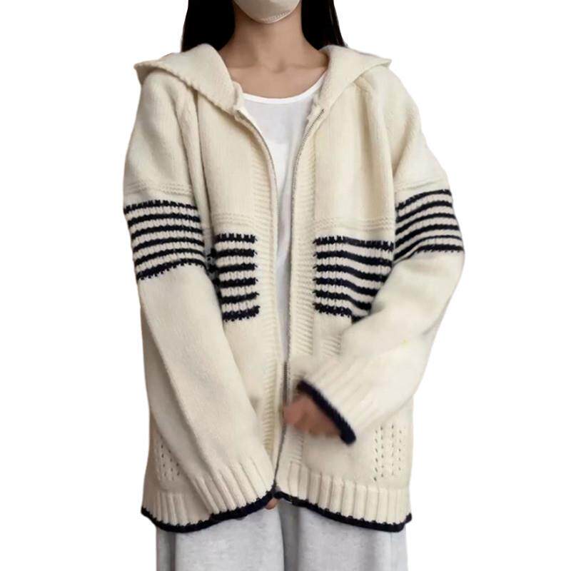 高级感条纹懒白色毛衣外套女秋慵202冬5早秋新宽松针织C9M46213开