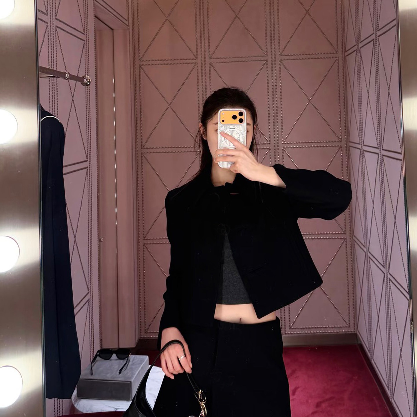G家小香风黑色西装套装女秋季高级感气质外套半身裙两件套