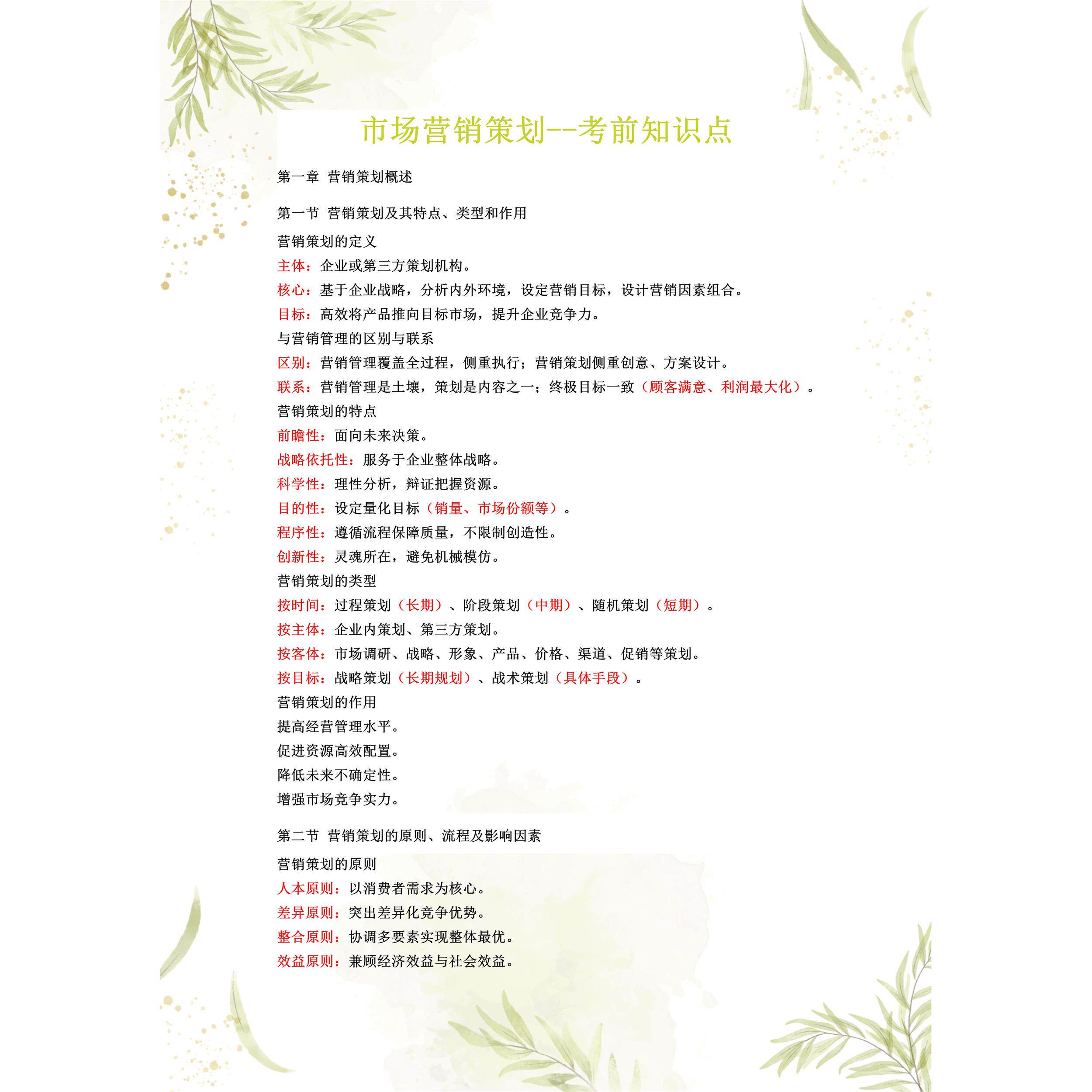 考点重点00184市场营销策划 考纲讲解自考笔记 资料 自考复习过关思维导图 精讲视频网课 考前押题资料
