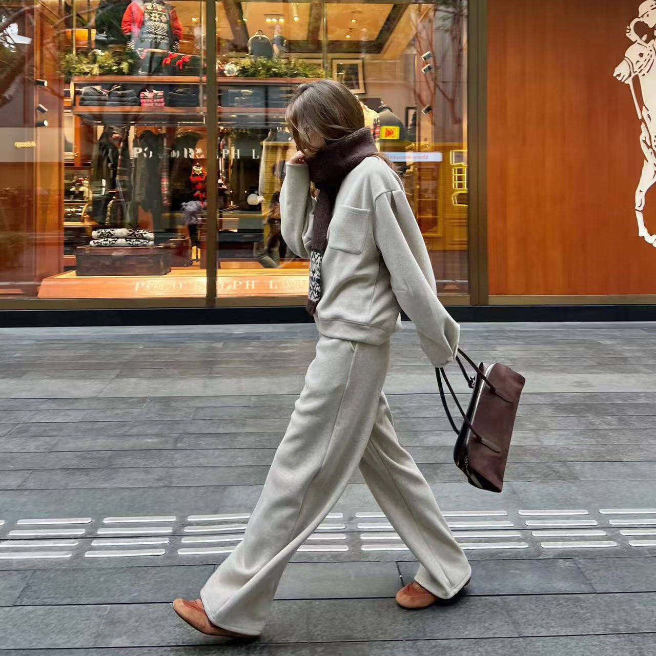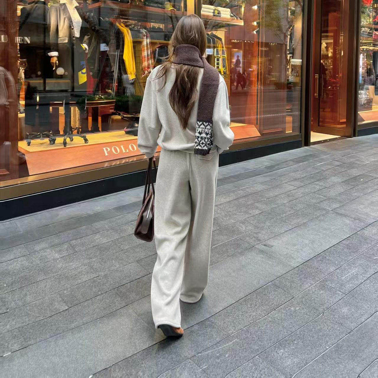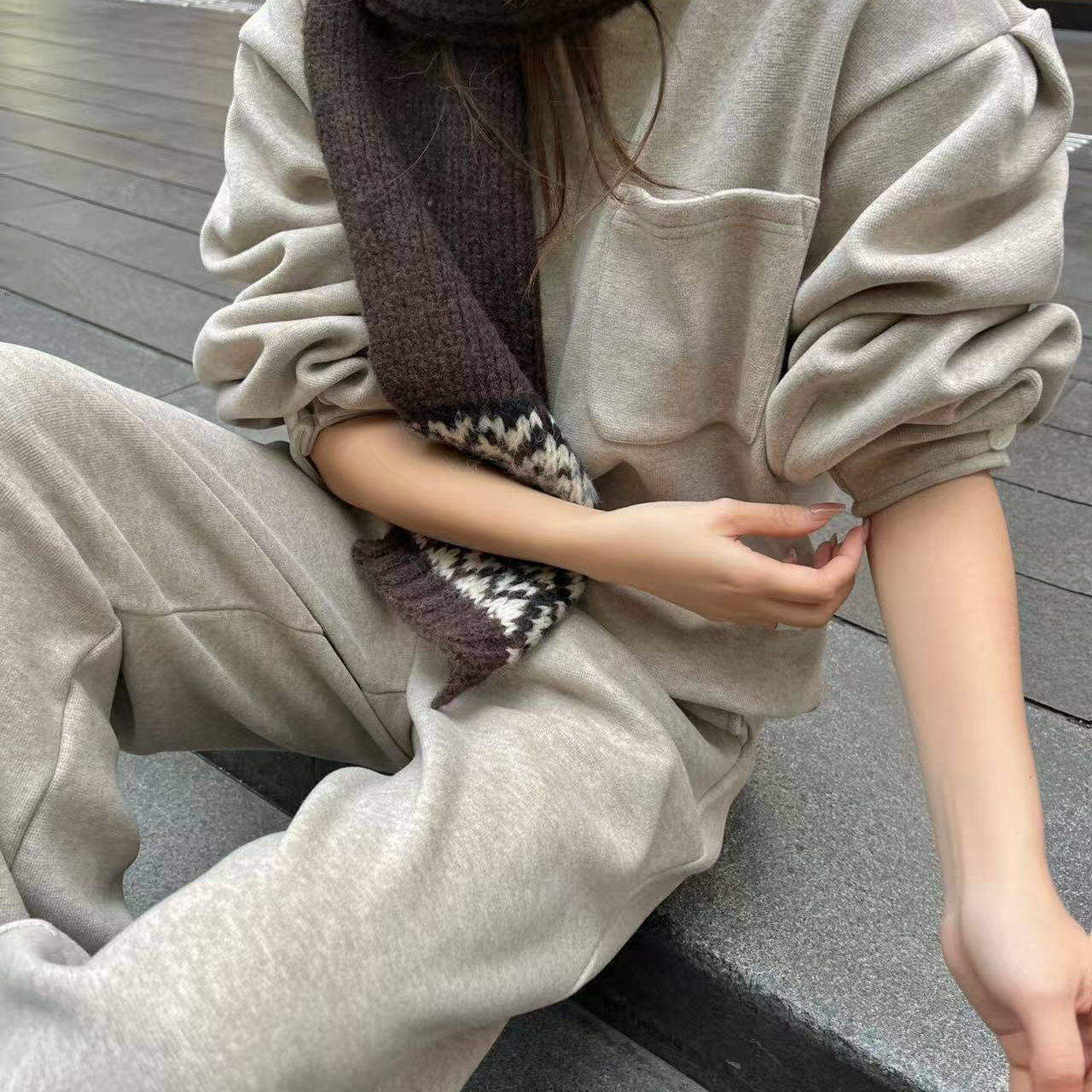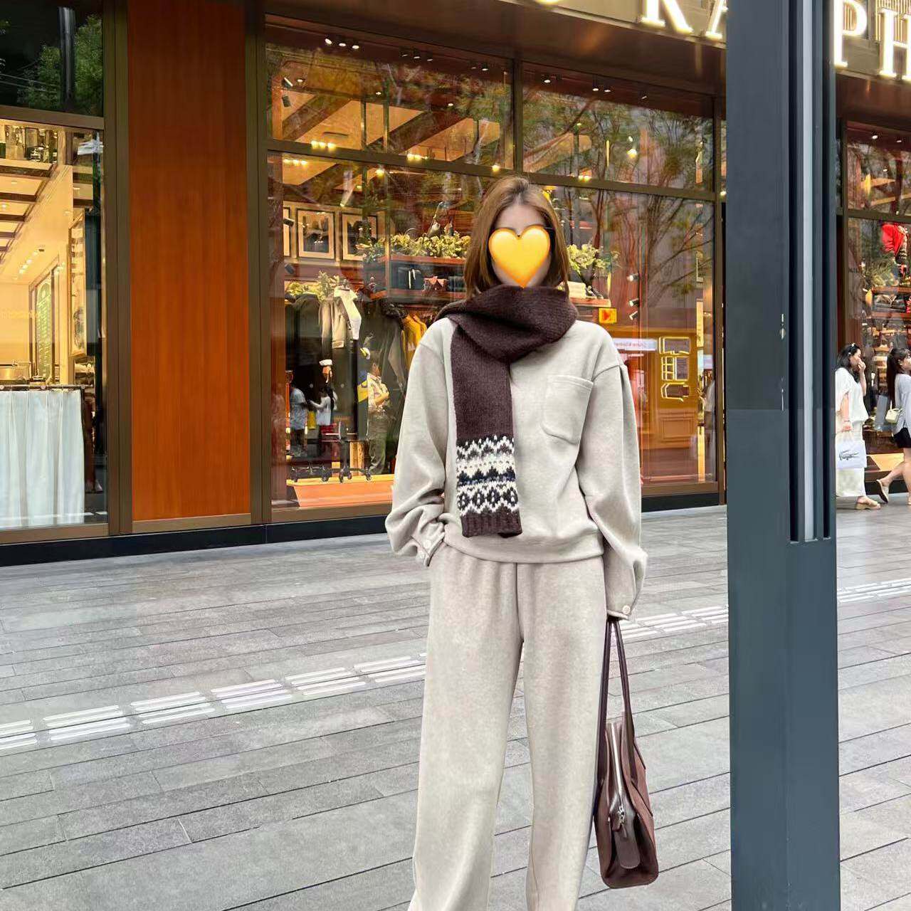 好漂亮卫衣休闲裤搭配围巾三件套女2025年冬季新款套装宽松休闲潮