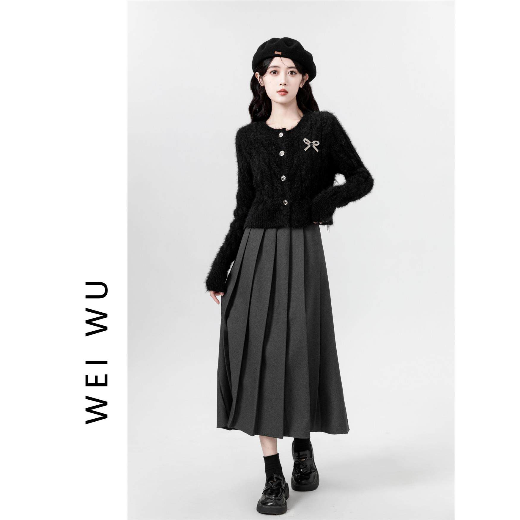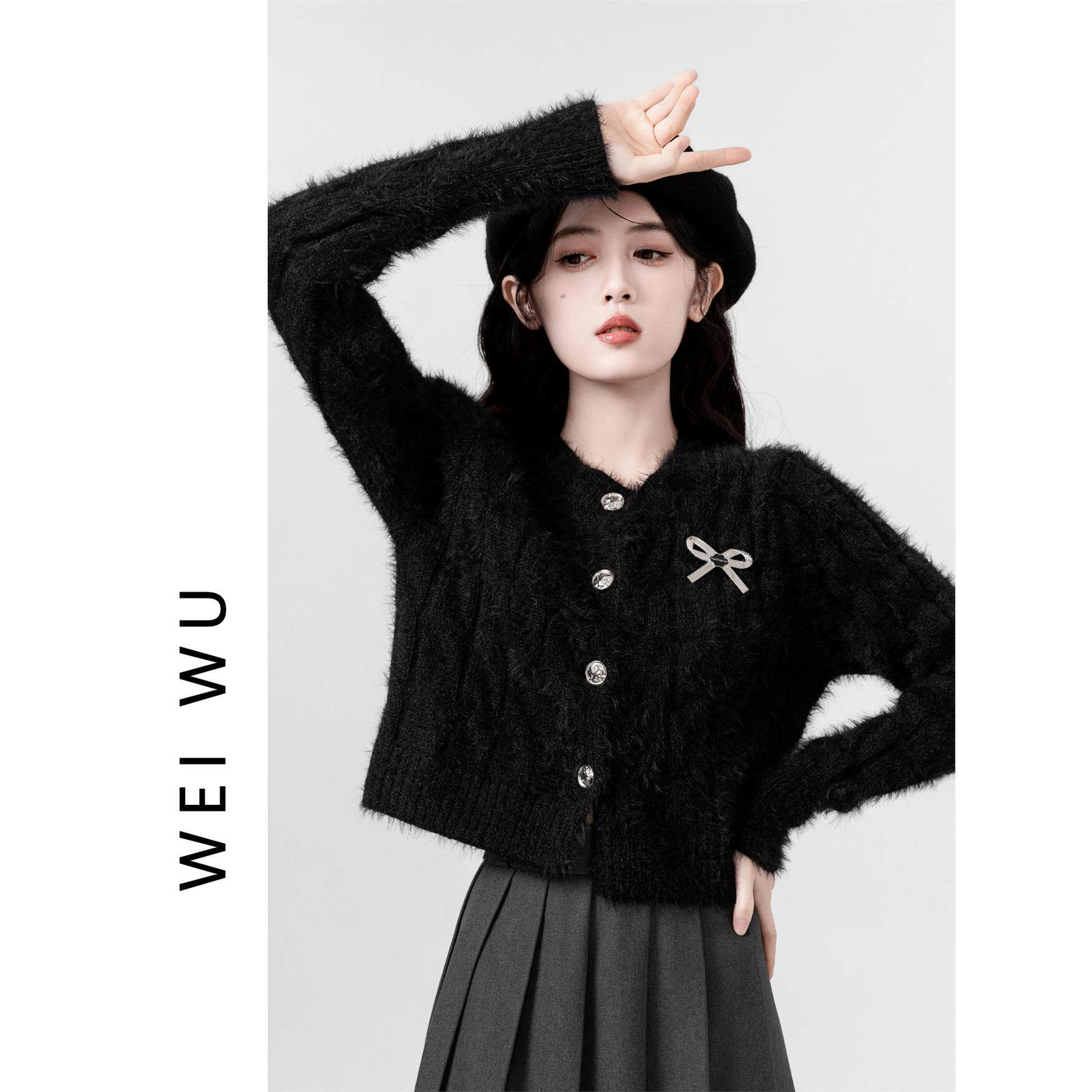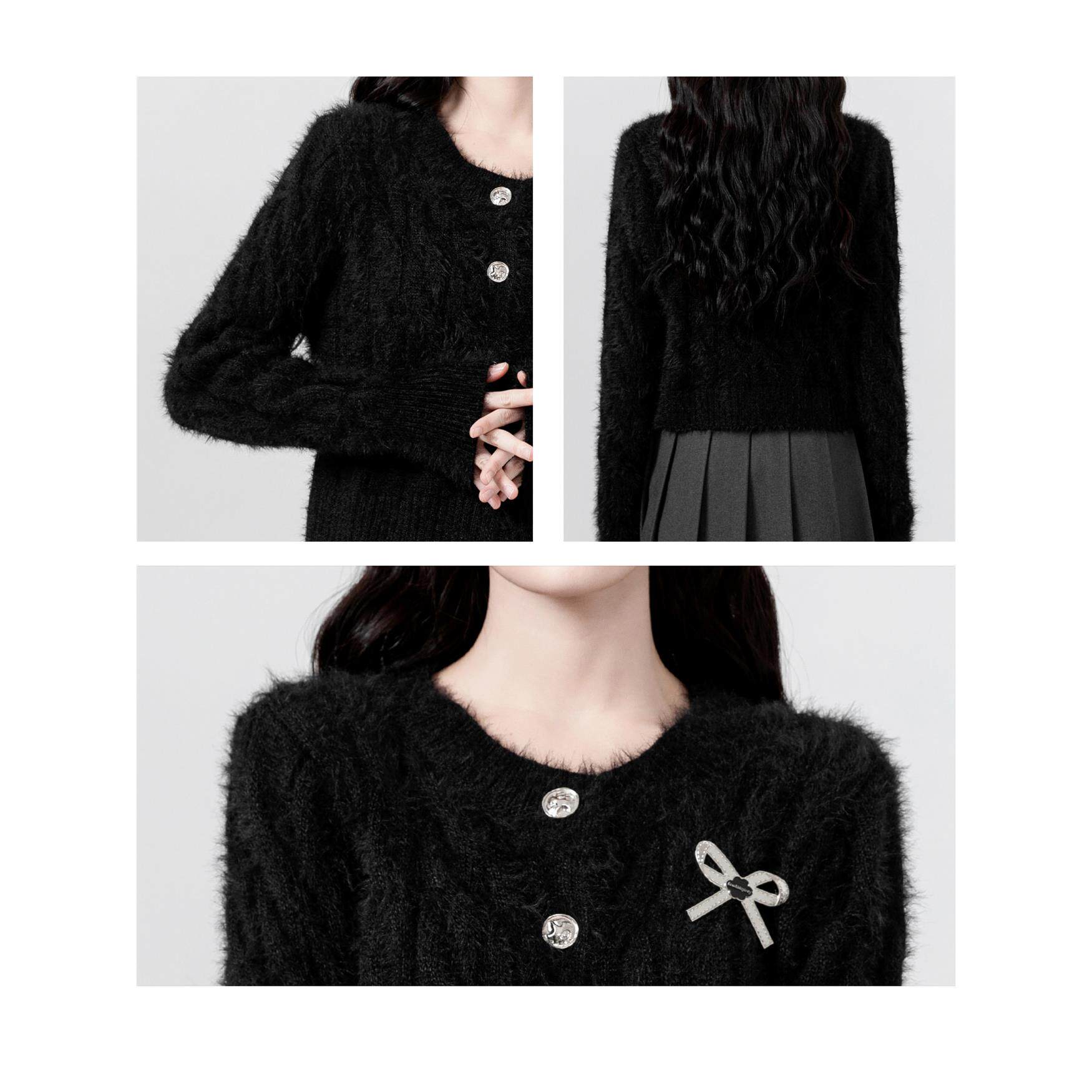 马海毛黑色毛衣外套女2025秋冬新款水貂毛软糯圆领针织开衫短上衣