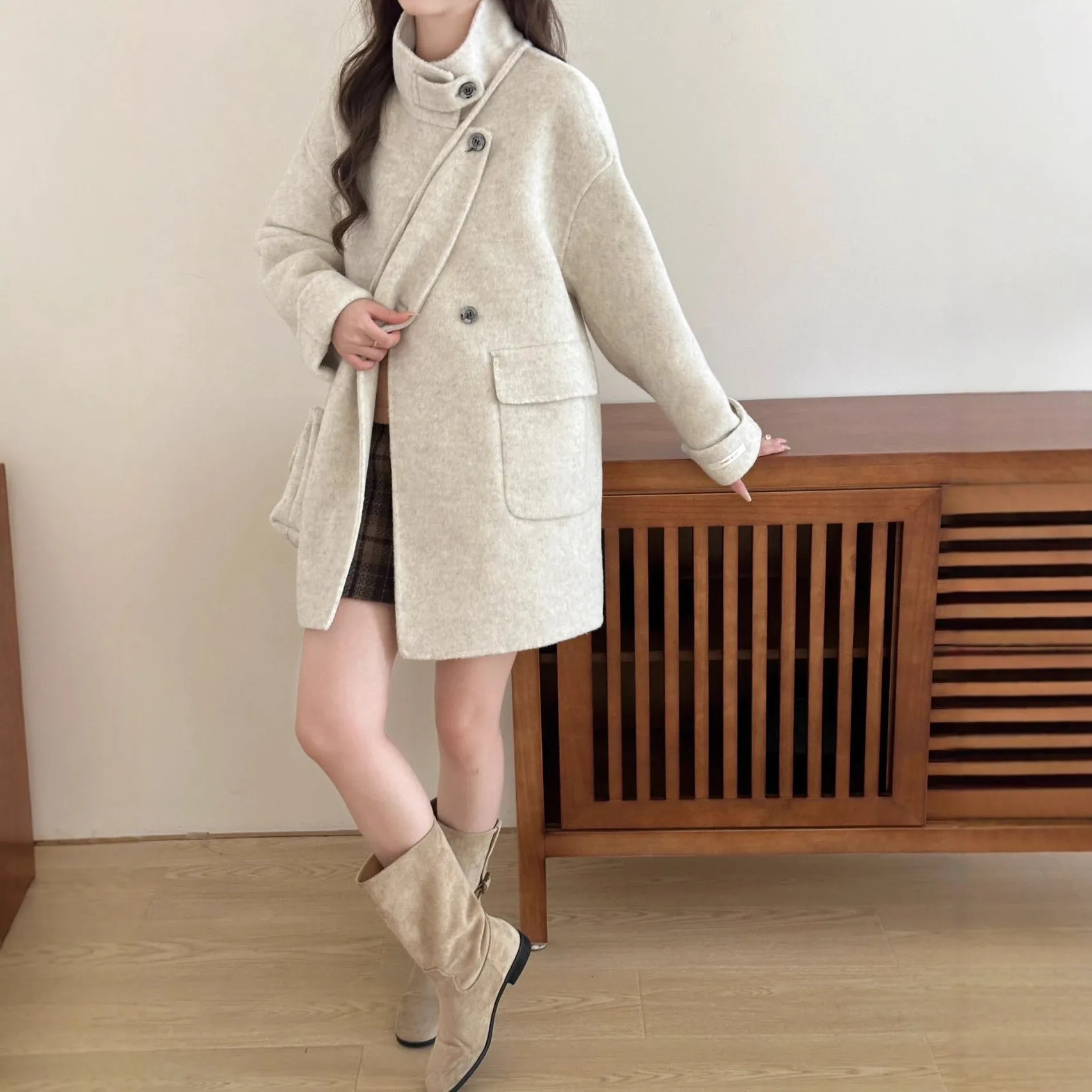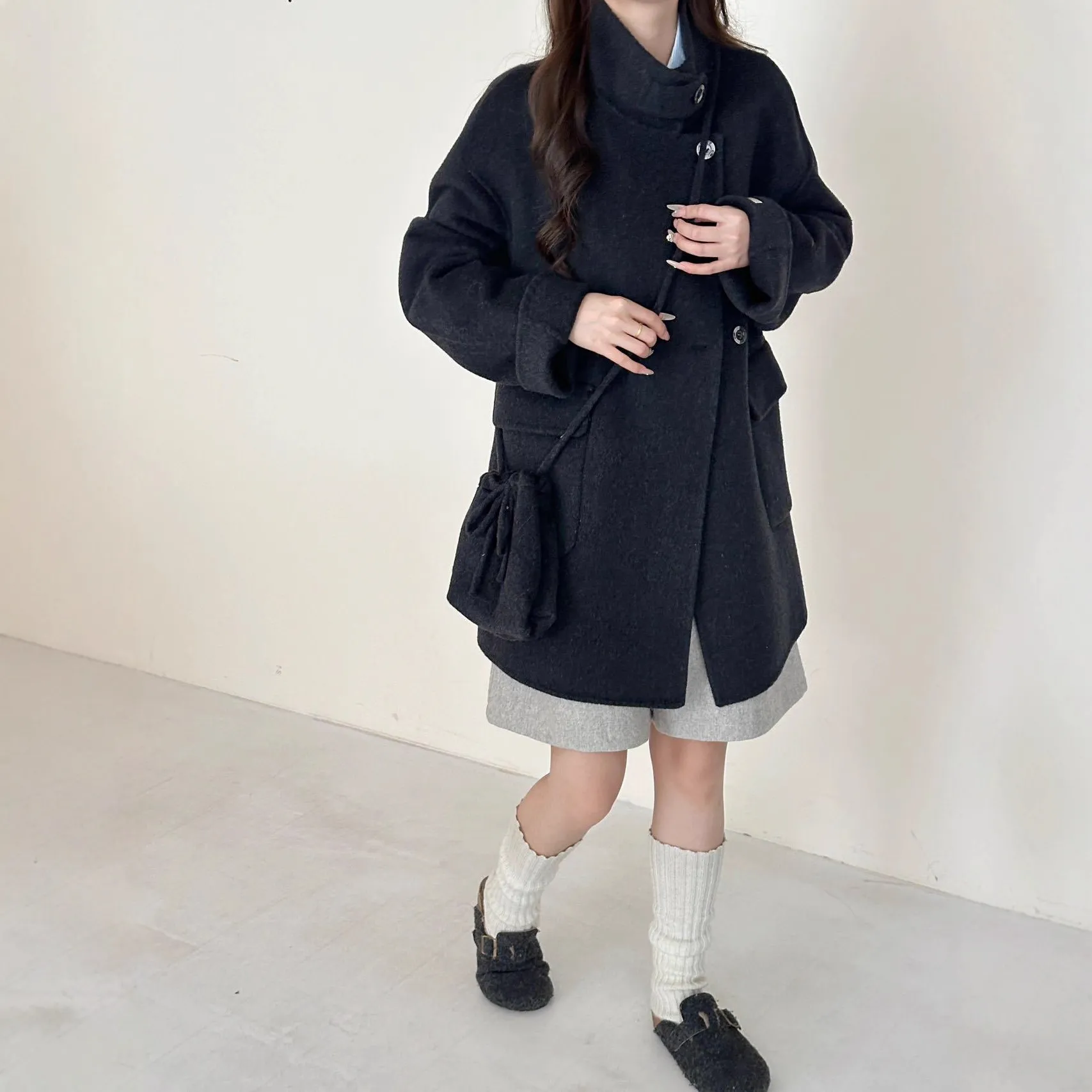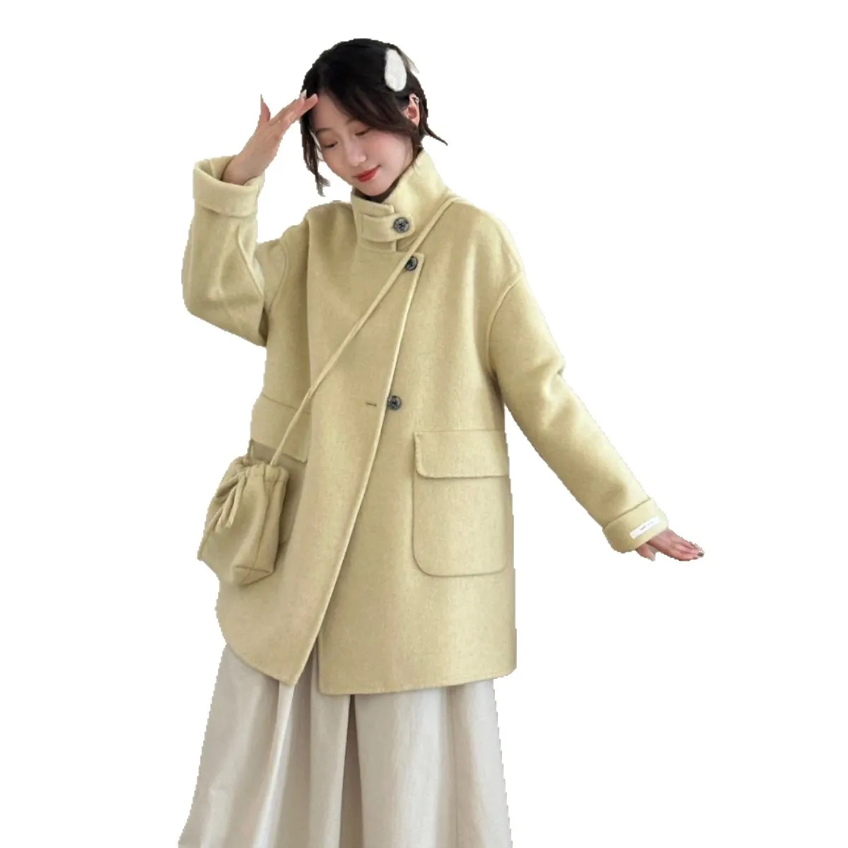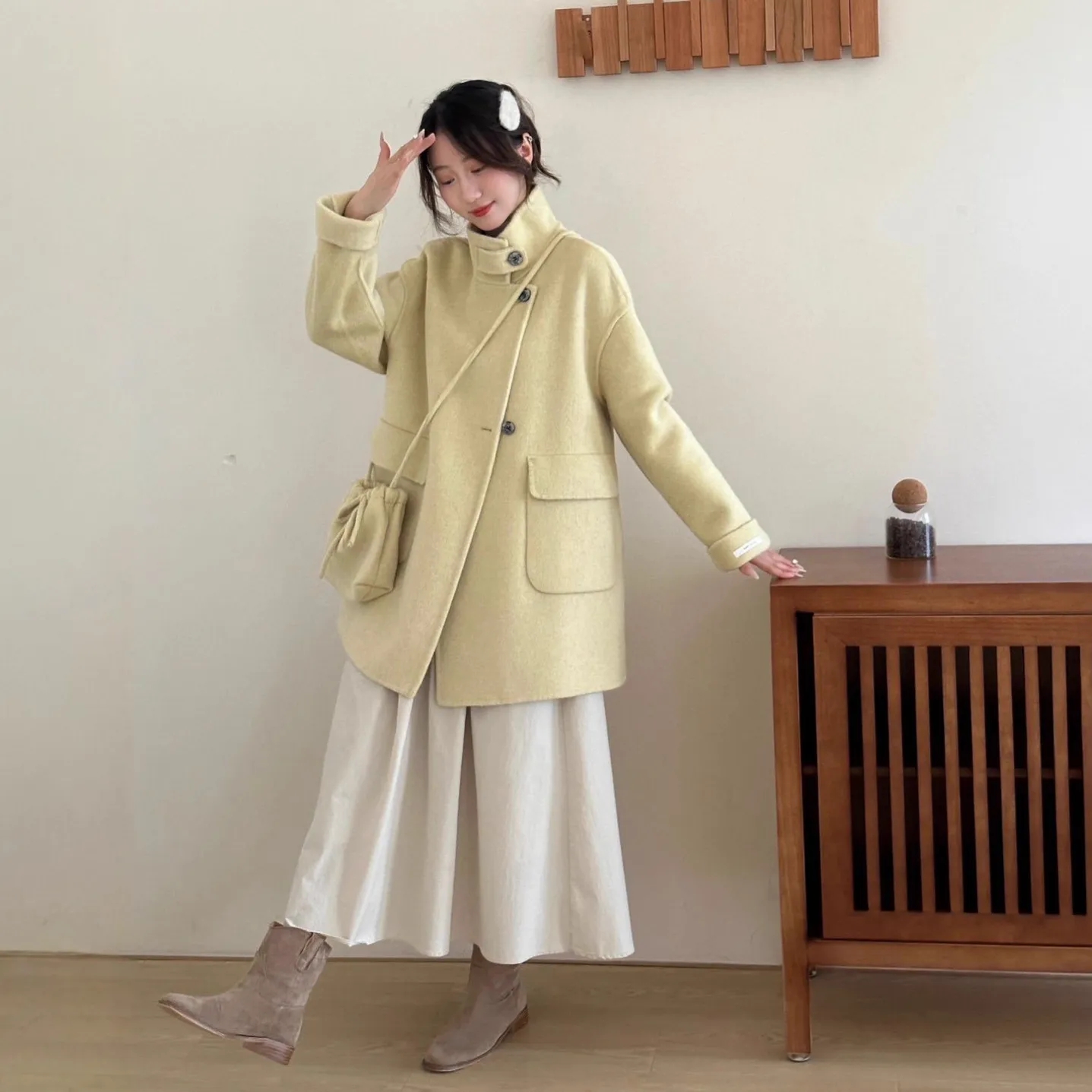 送包包2025秋冬新款小个子双面羊毛大衣 中长款宽松立领羊毛外套