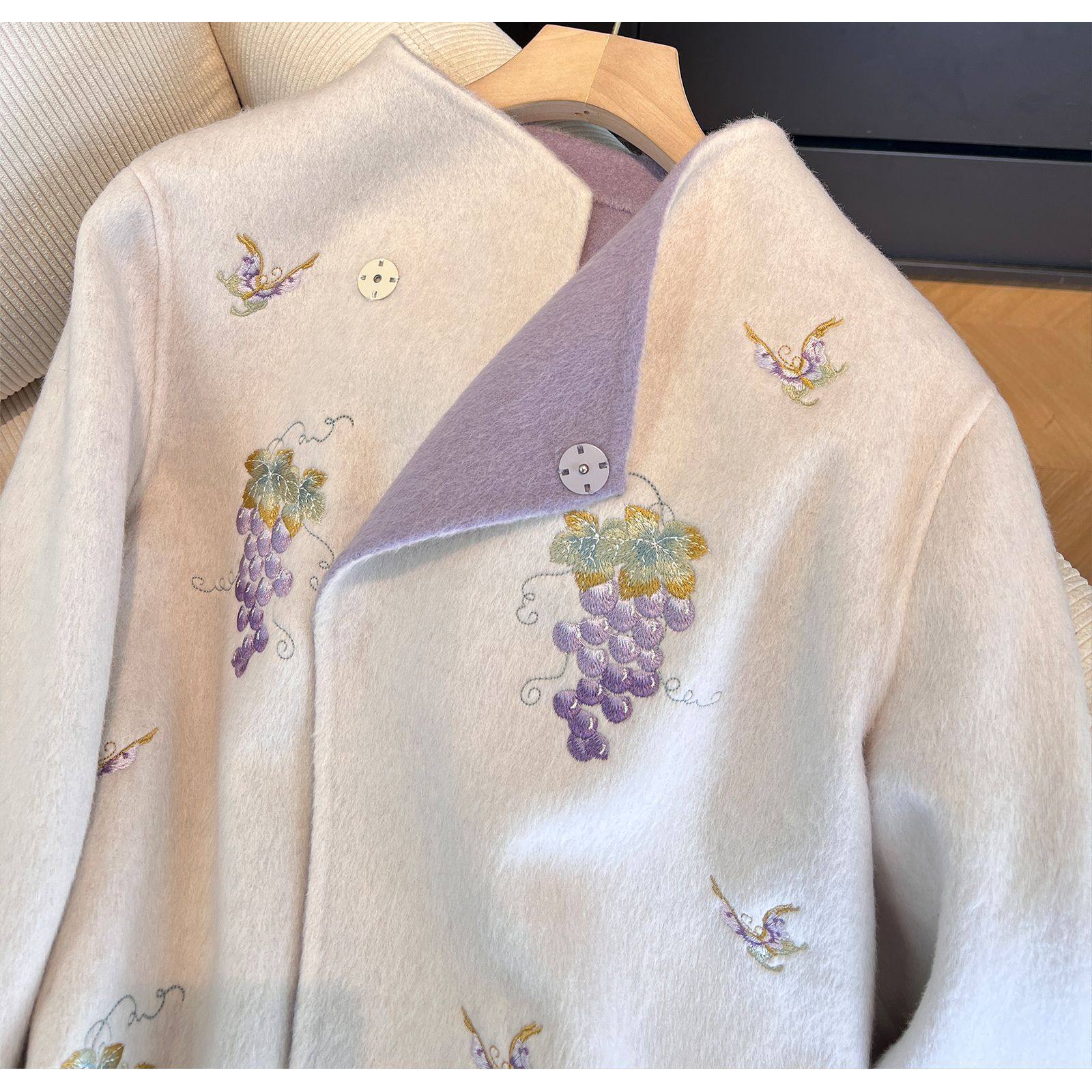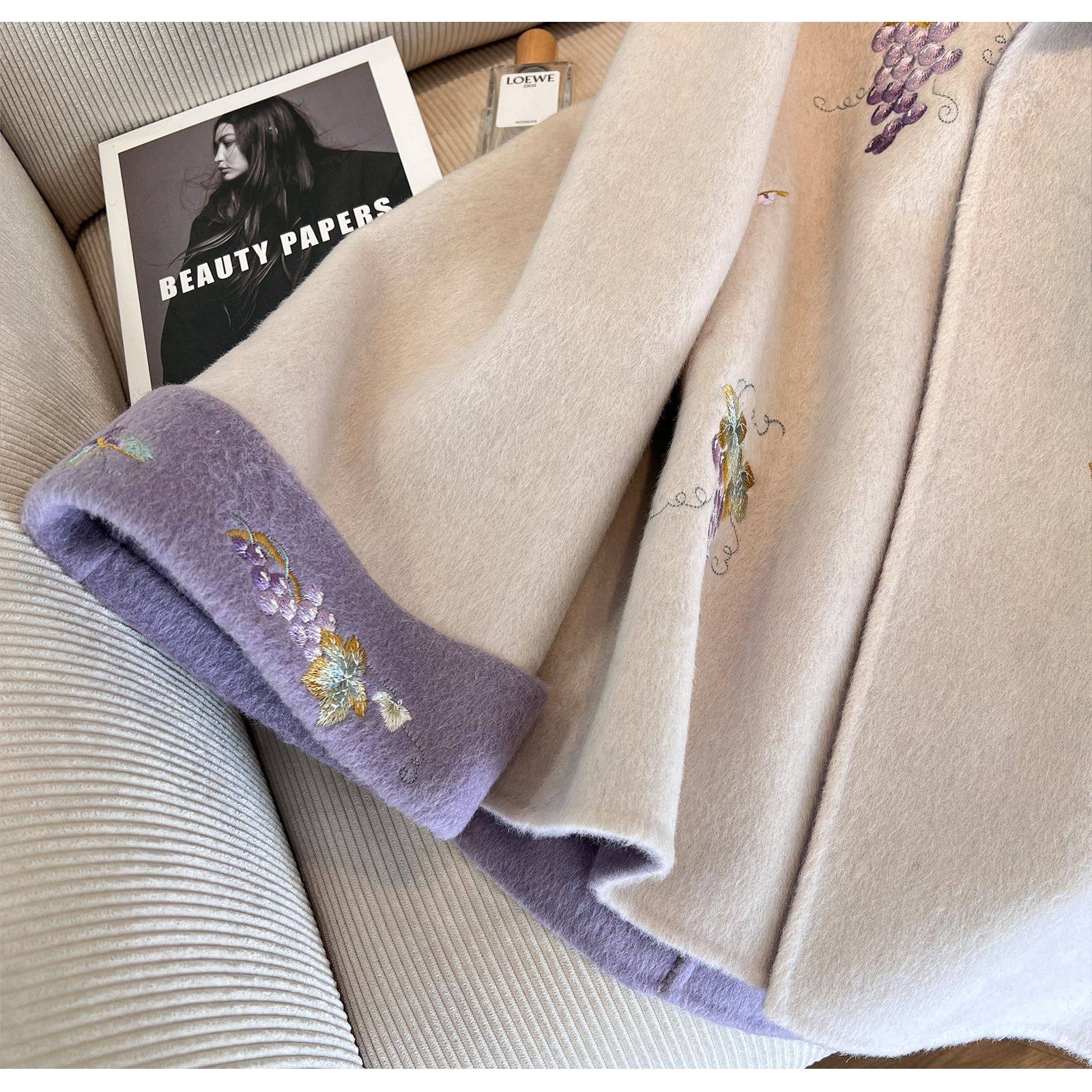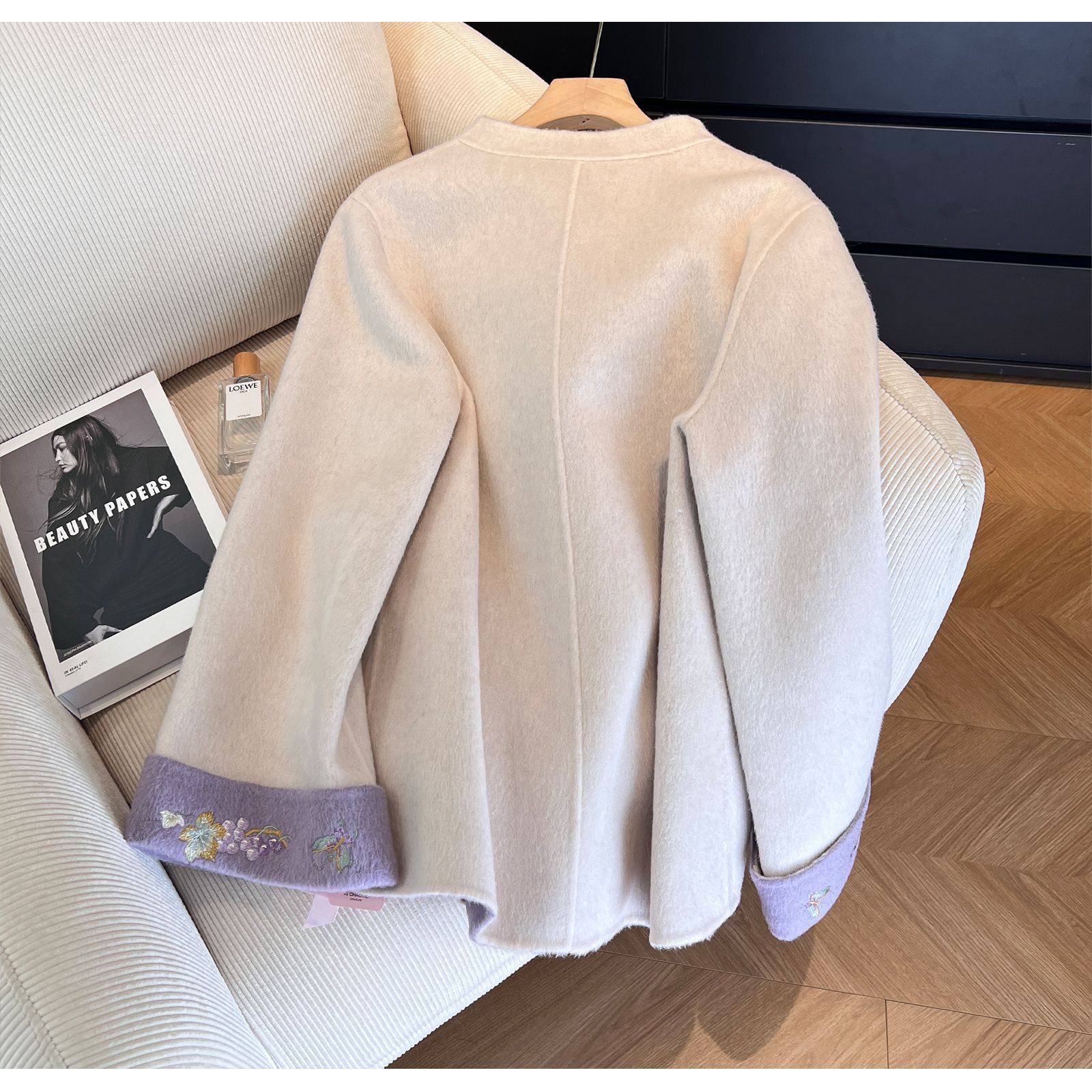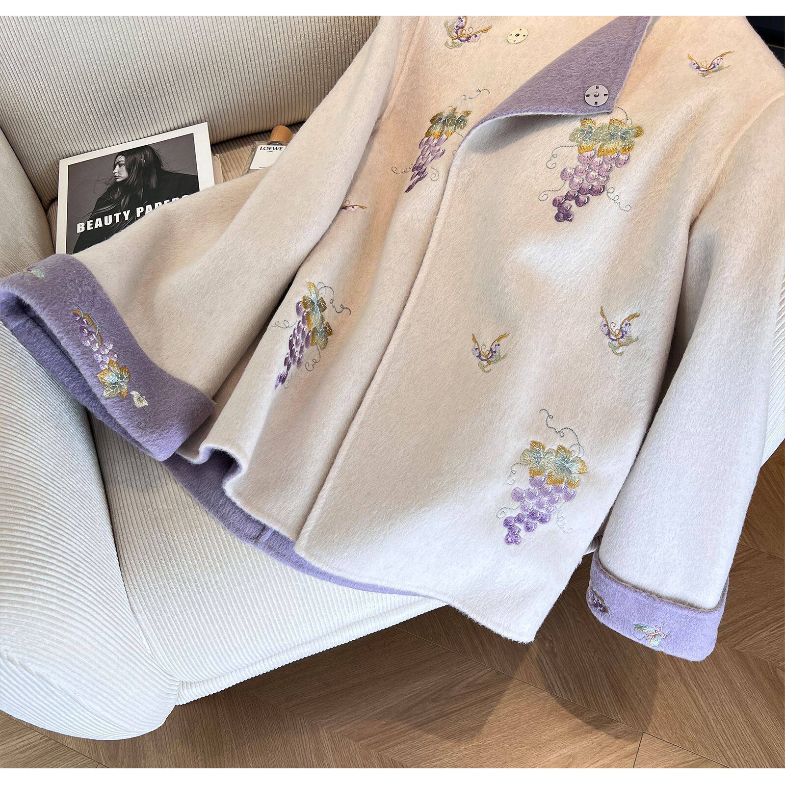 两面穿新中式国风双面呢短款大衣女秋冬新款毛呢外套半身裙两件套