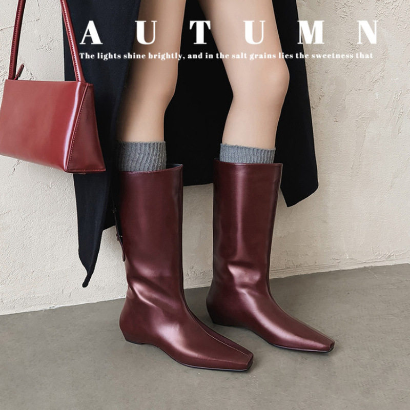 牛皮版~秋冬新款翻折纽扣方头2厘米西部牛仔靴套筒中筒靴短靴女