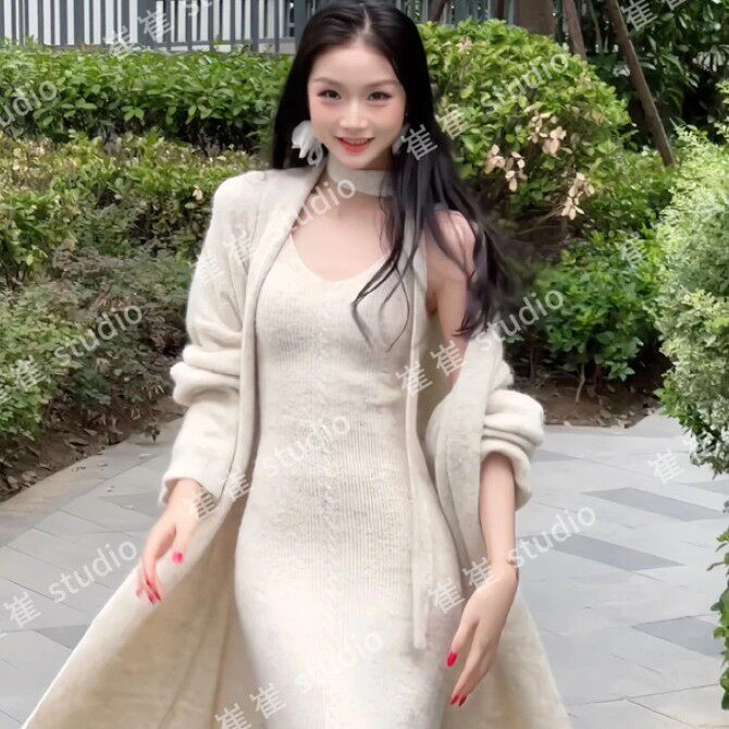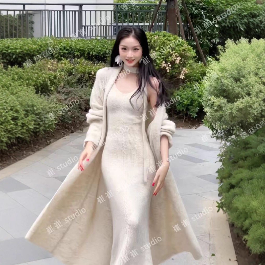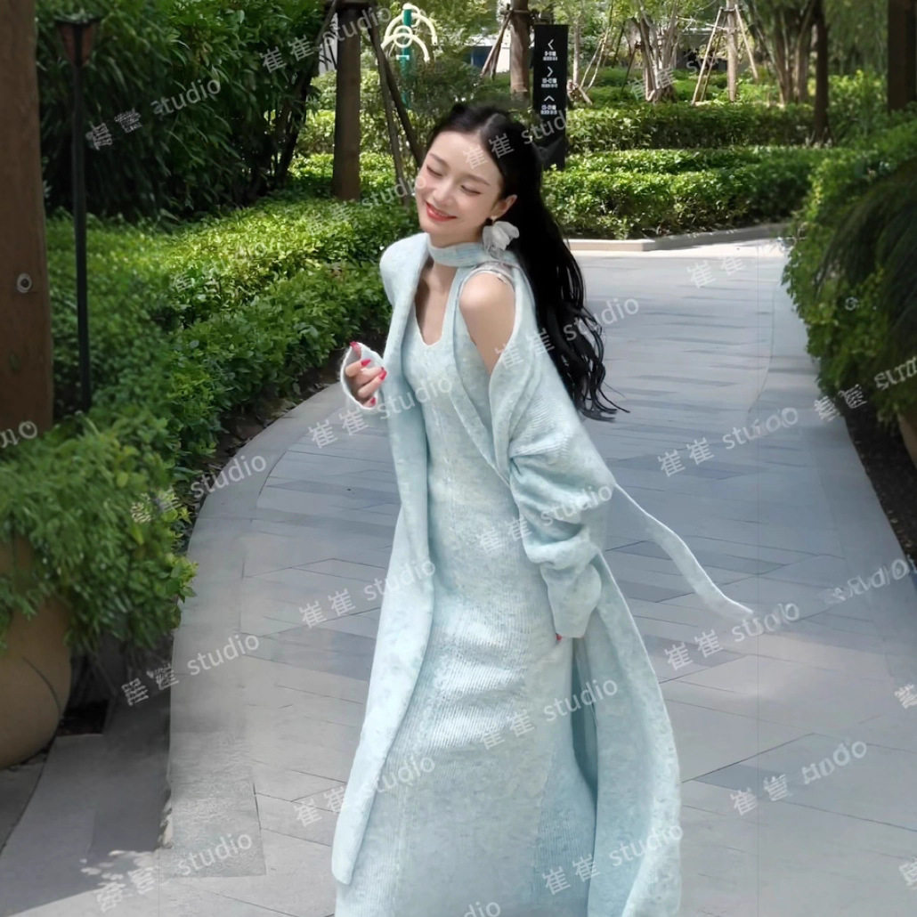 【蓝调时刻】秋冬季休闲风温柔新款早秋法式长款时尚针织套装