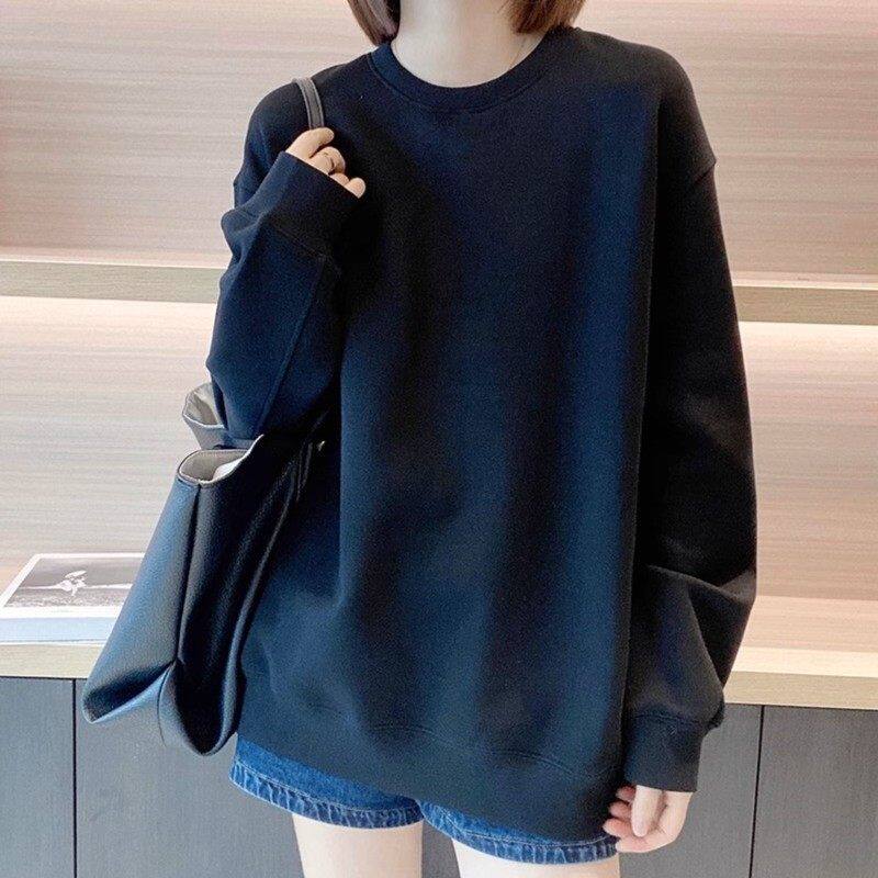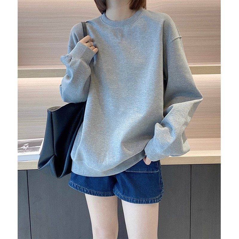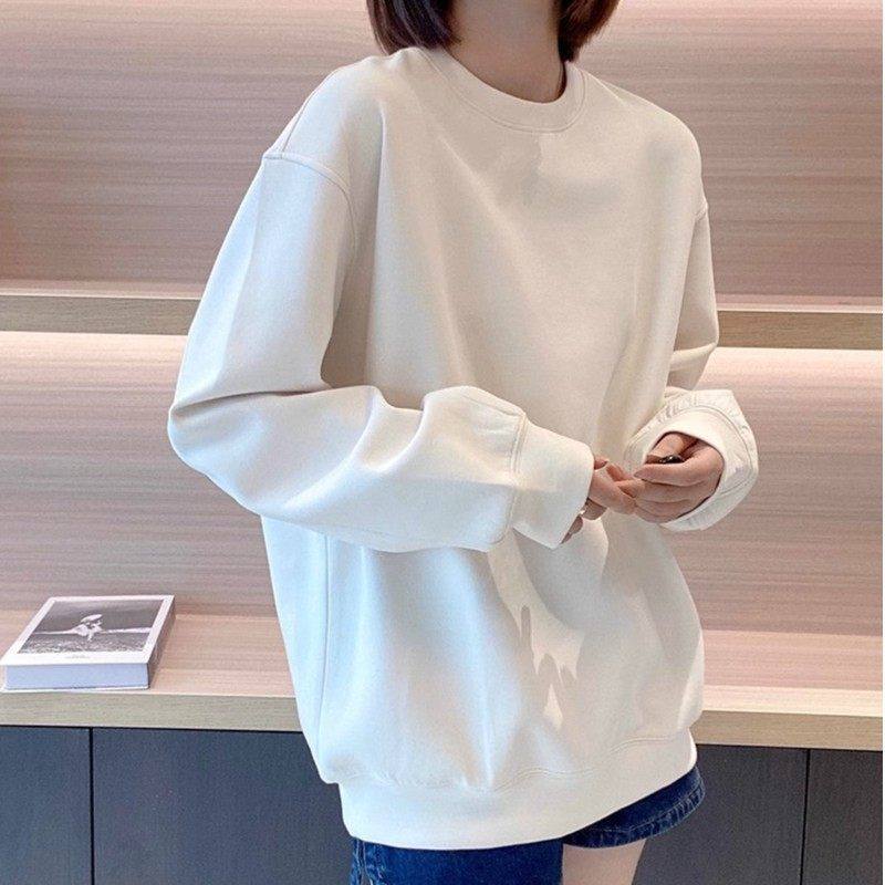 白色长袖纯棉休闲 上衣女2025春秋冬新款慵懒风宽松中长版休闲 打