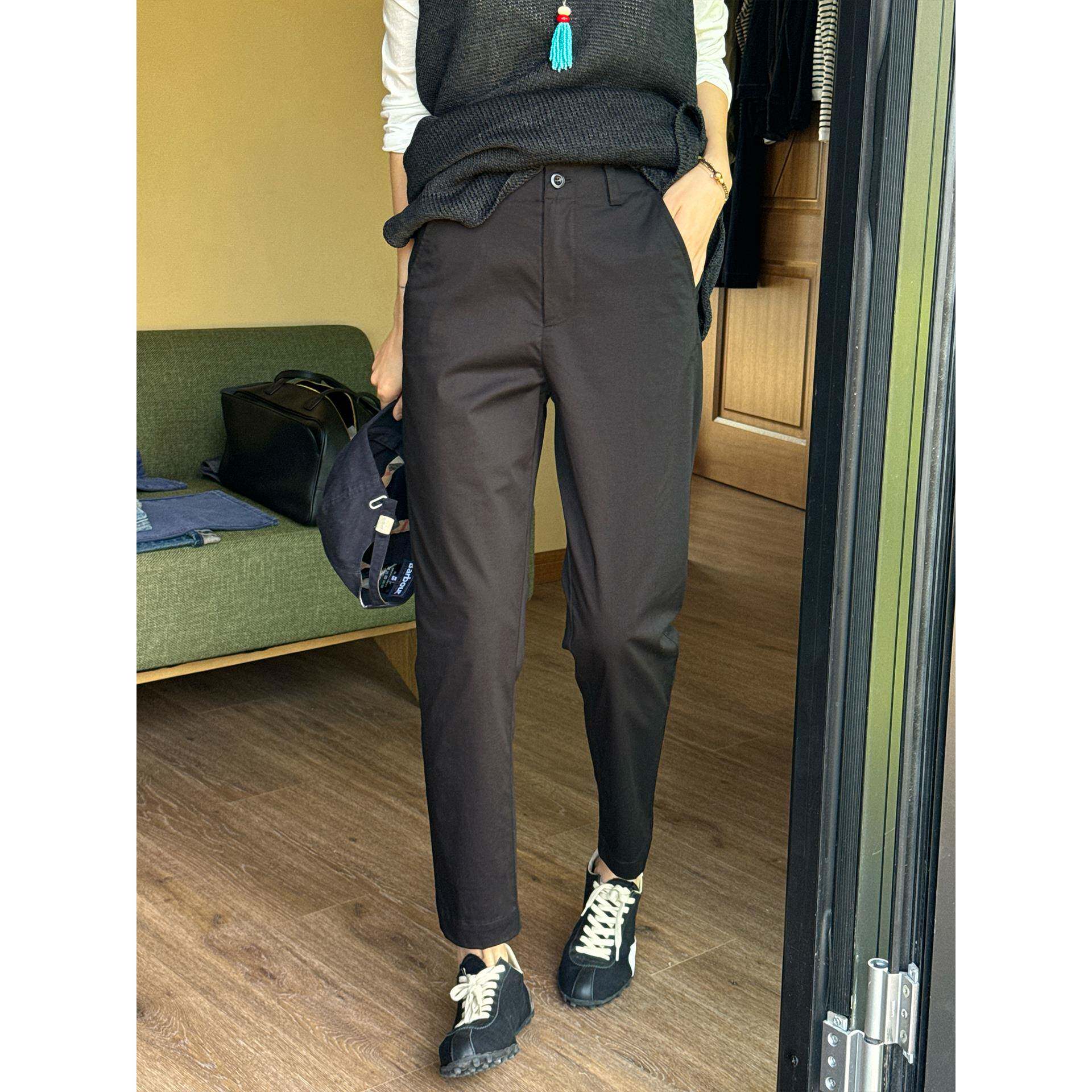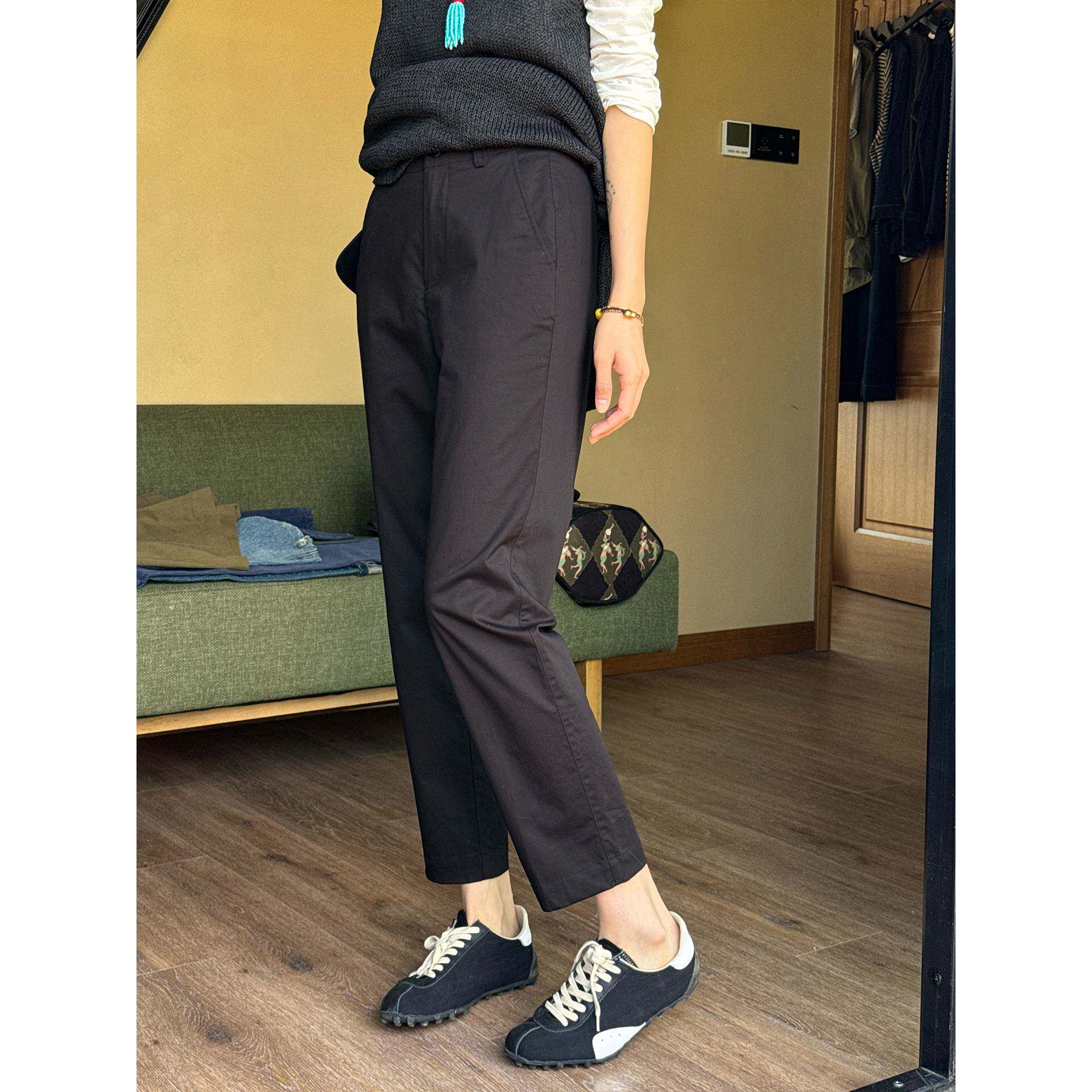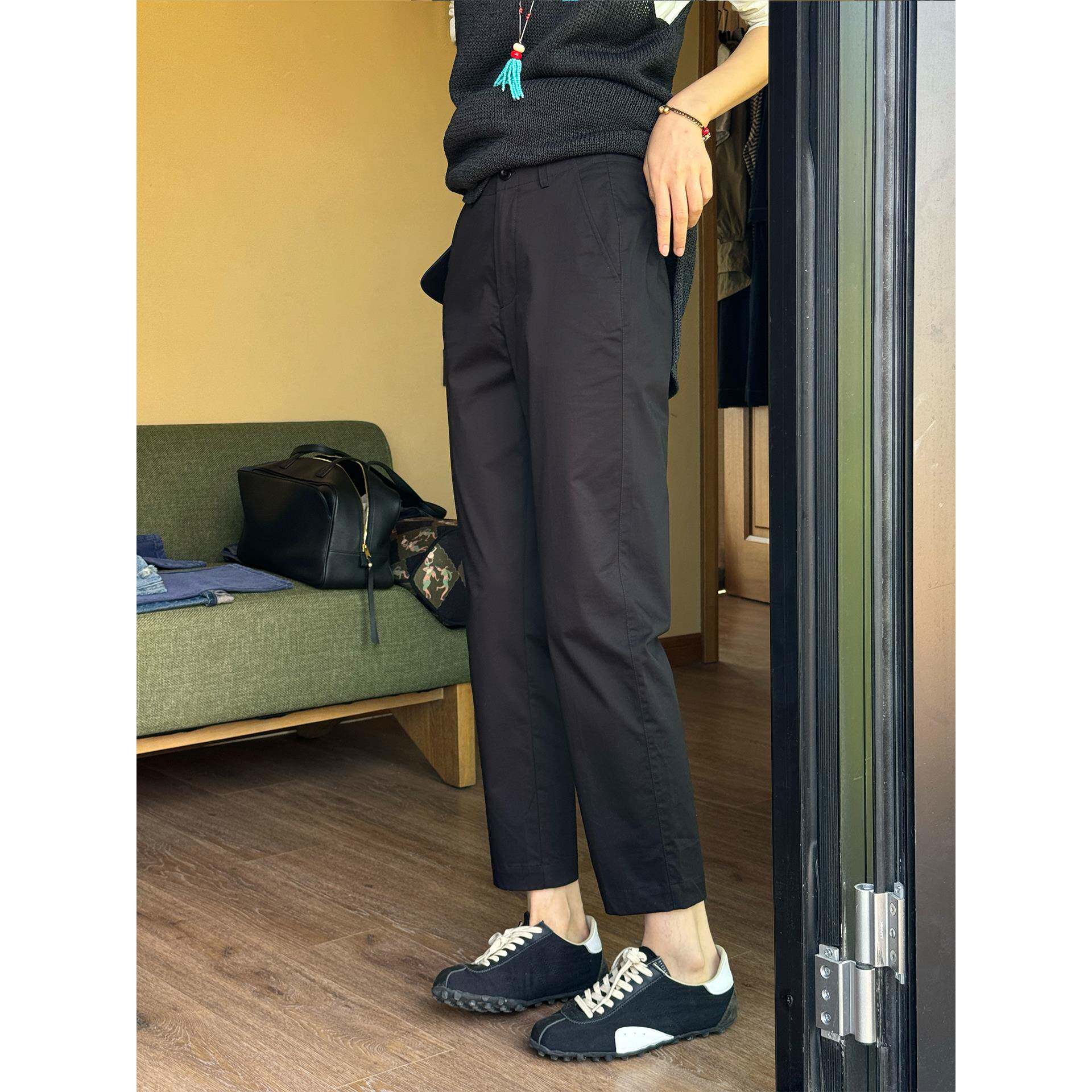 周浪清小个子窄版九分直筒裤女款2025新款夏季黑色薄款休闲烟管裤