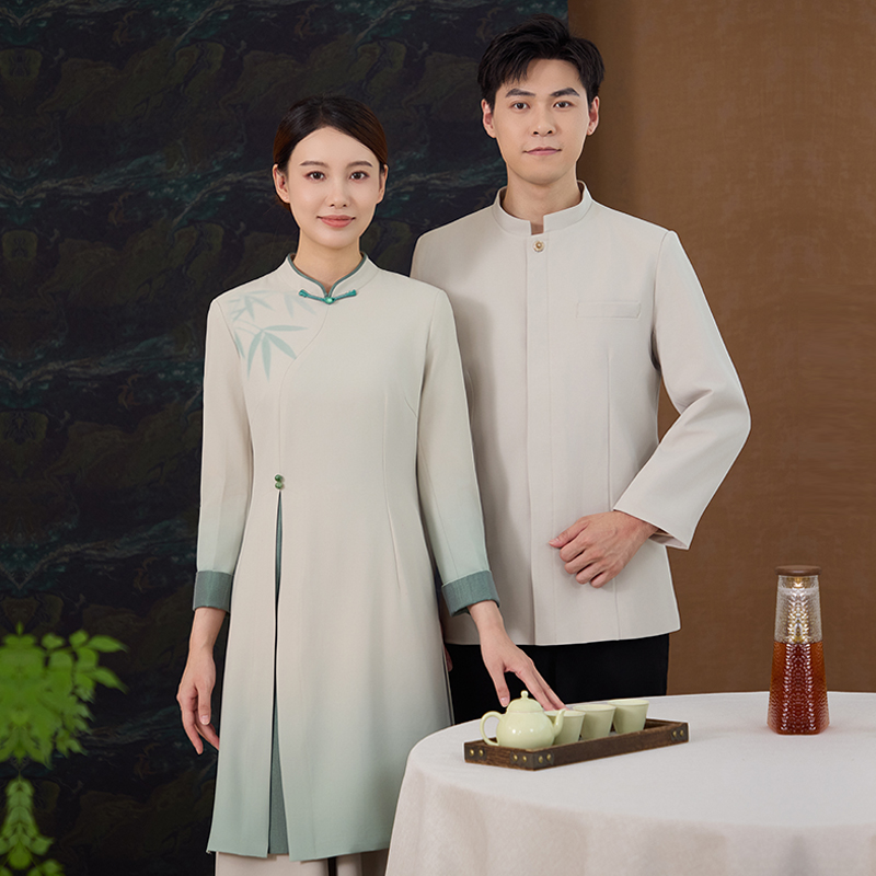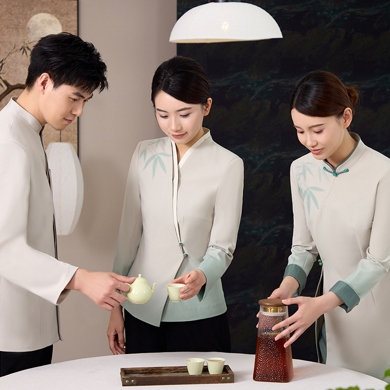 新中式酒店服务员工作服秋冬长袖餐饮茶酒楼会所国风中餐厅新款
