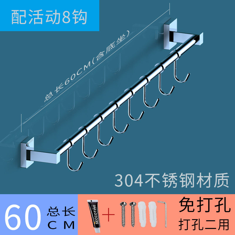 首页> 家居> 304不锈c钢厨房厨具铲勺挂钩壁挂式抹布置物架挂杆长杆挂架免热卖