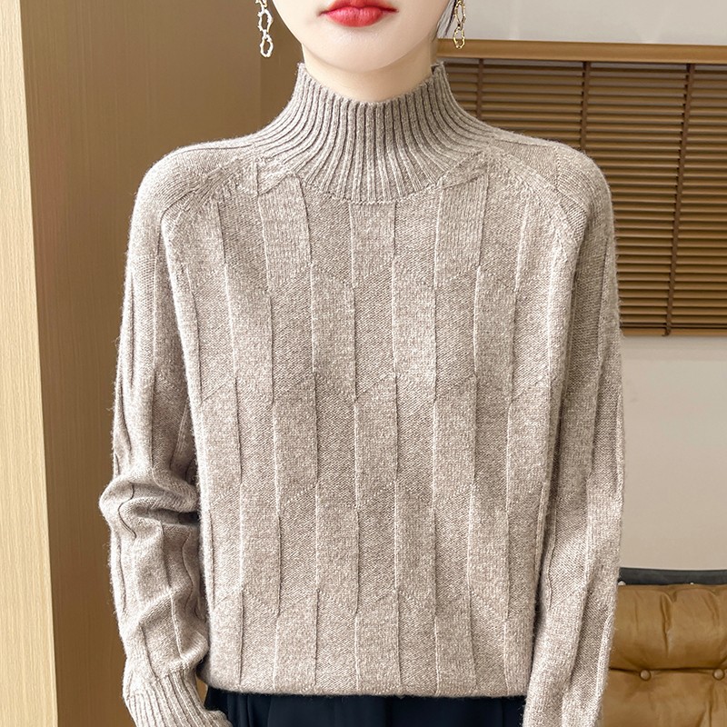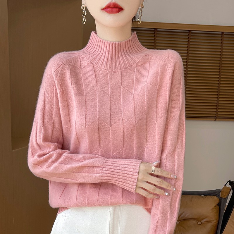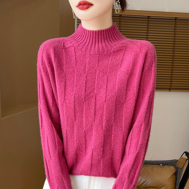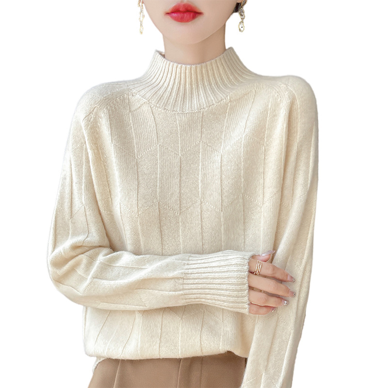 新款一线7针加厚平行正反针半高领羊毛衫宽松套头针织打底衫上衣