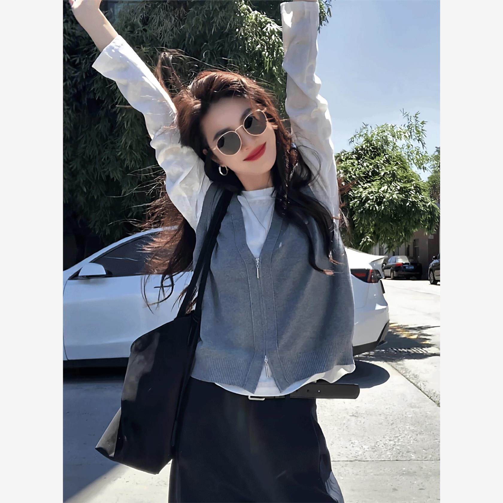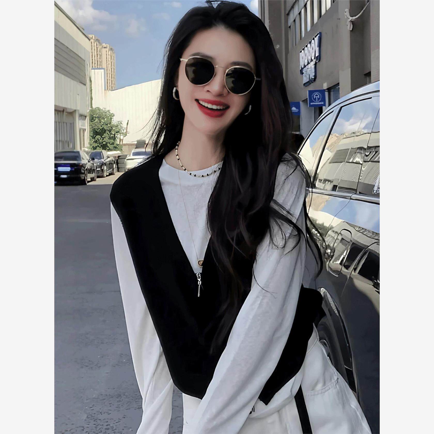 韩系早秋薄款穿搭针织衫女2025新款爆款针织马甲打底衫真两件上衣