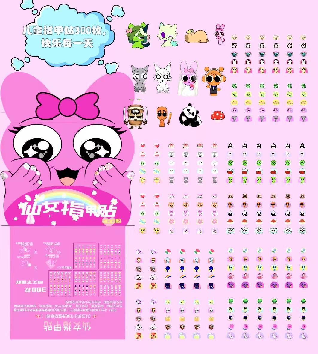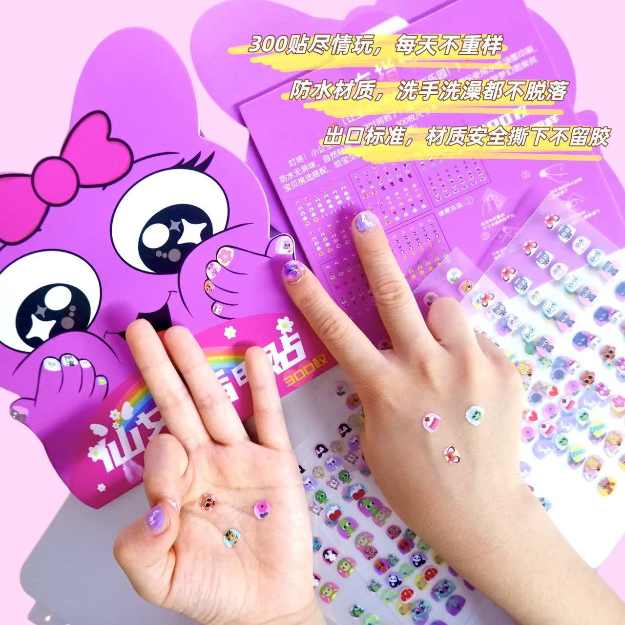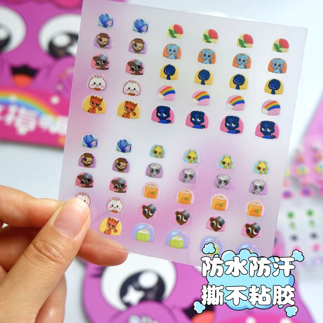 节奏盒子山海经卡通指甲贴防水美甲贴儿童背胶装饰粘贴画不伤手
