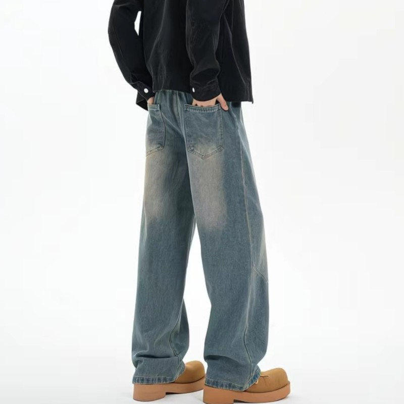 美式复古直筒牛仔裤子秋冬季高街潮牌宽松阔腿裤休闲百搭抽绳长裤
