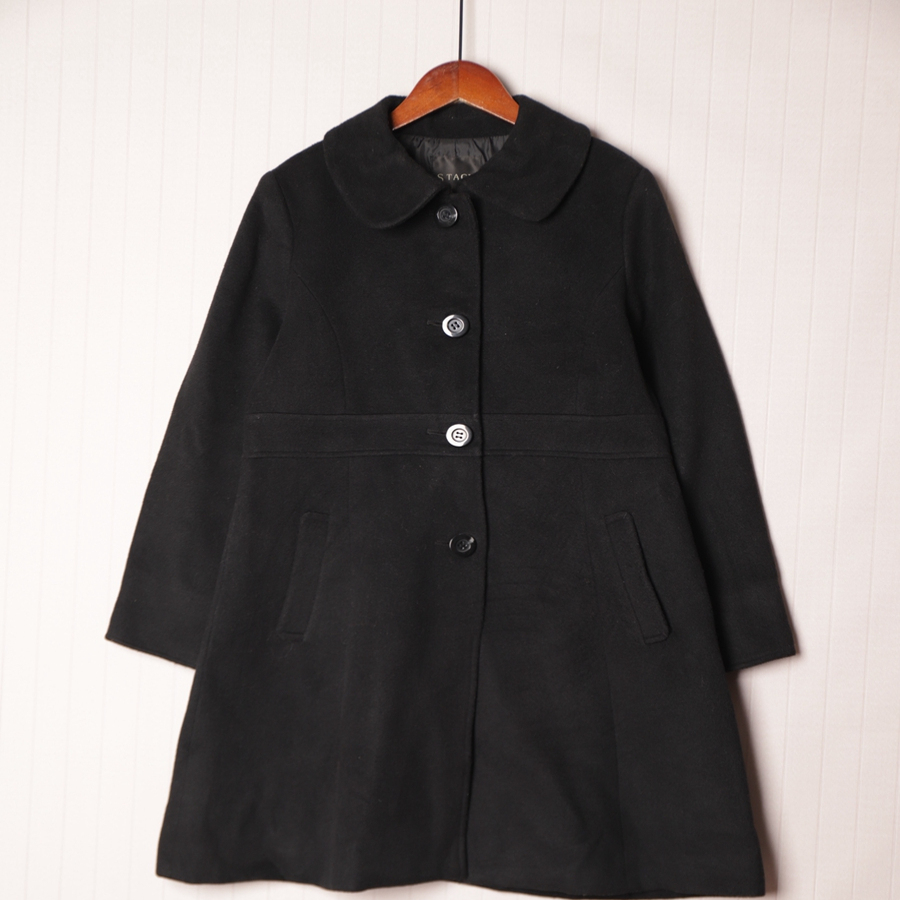 秋冬Vintage复古英伦风拼接色羊毛呢子大衣D13