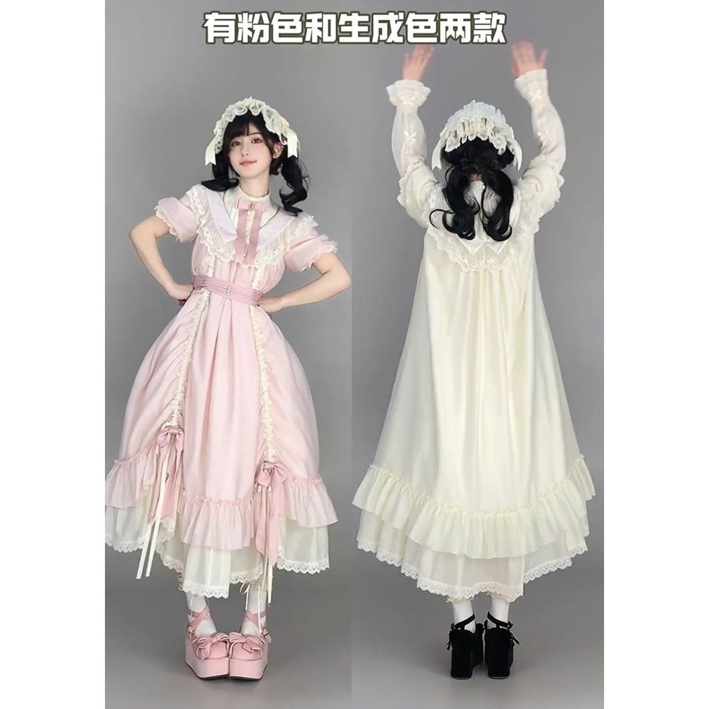 琉璃花海 玫瑰绣花可提拉多穿op 设计感袖套可拆卸收腰长裙两件套