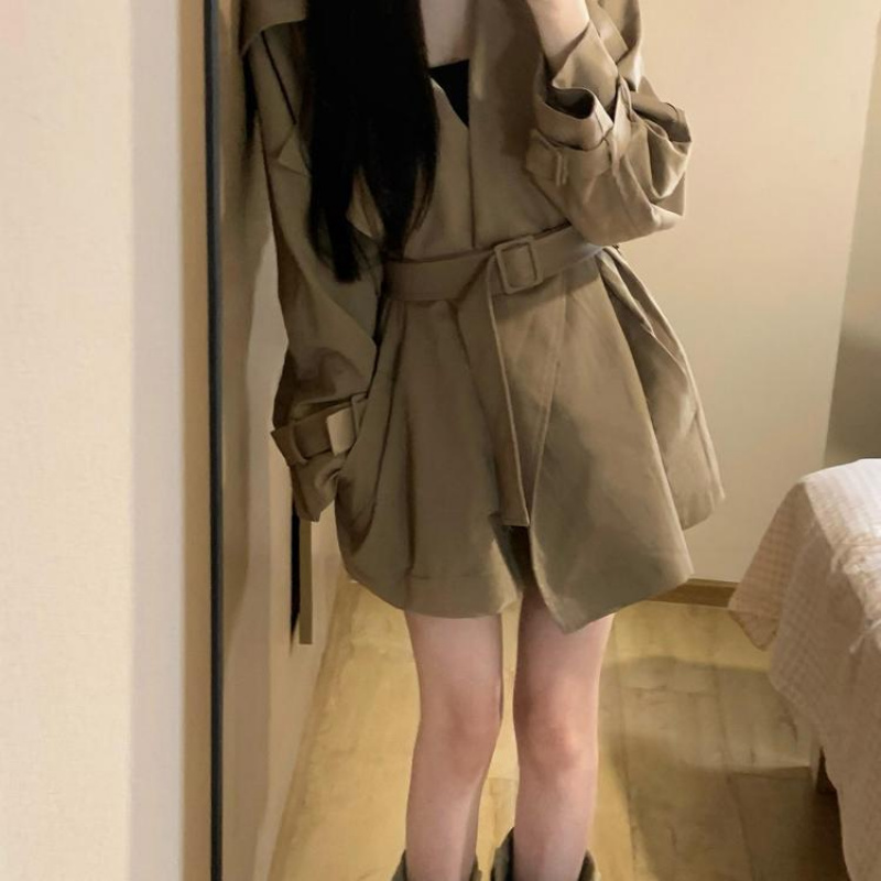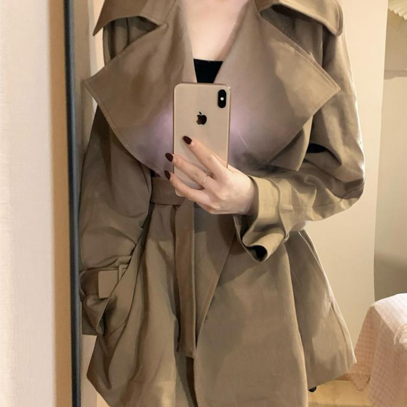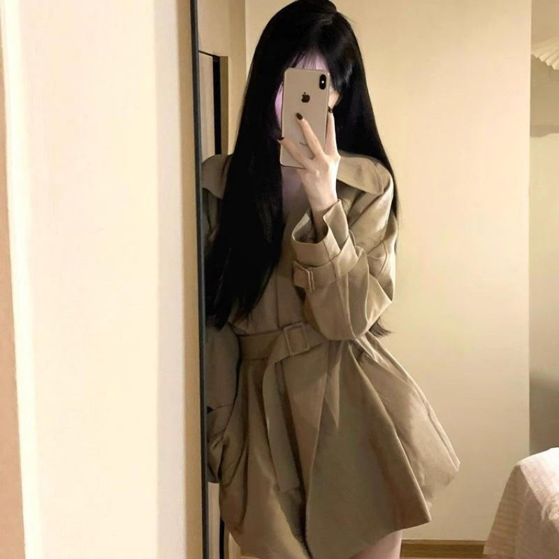 英伦风咖色大翻领系带风衣外套女2025秋气质高级感中长款休闲上衣