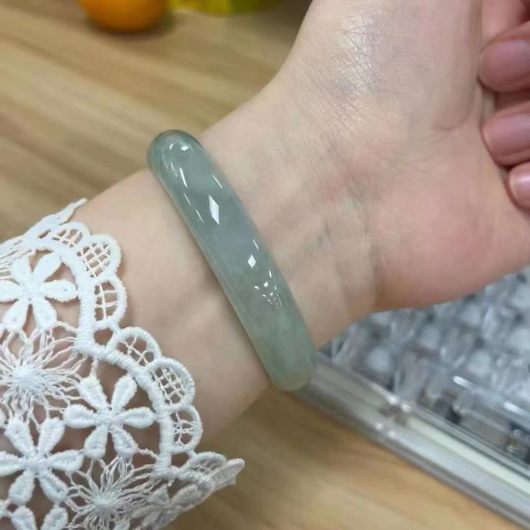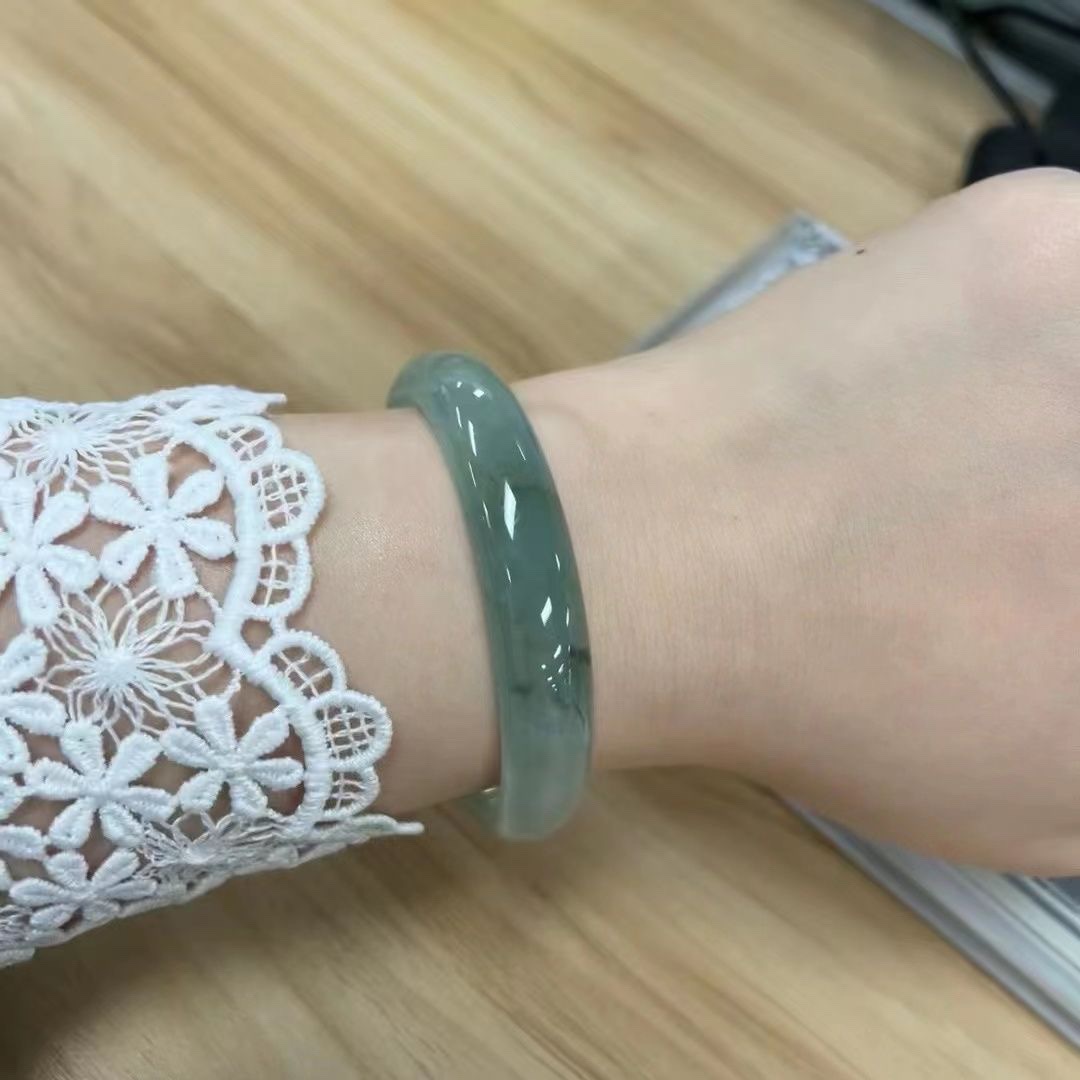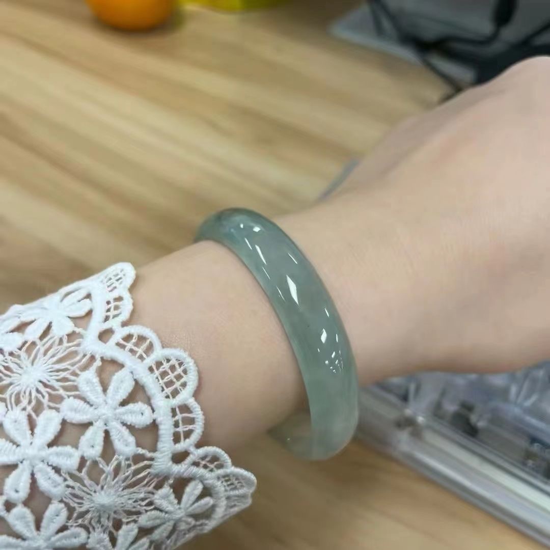 透水润阳绿冰种晴水飘花油青缅甸老坑翡翠手镯玉石镯玉髓镯子