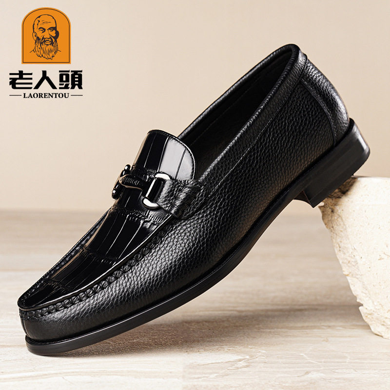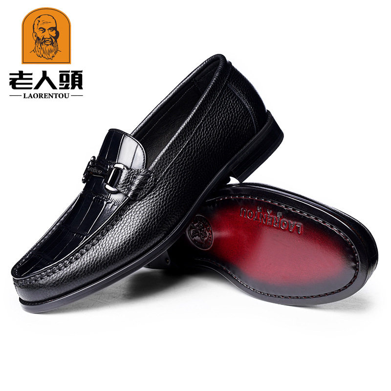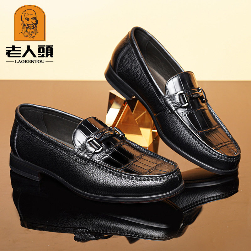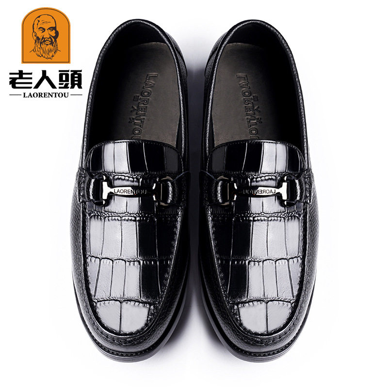 老人头品牌正品商务鳄鱼压花纹皮质皮鞋鞋面休闲百搭牛皮羊皮鞋垫