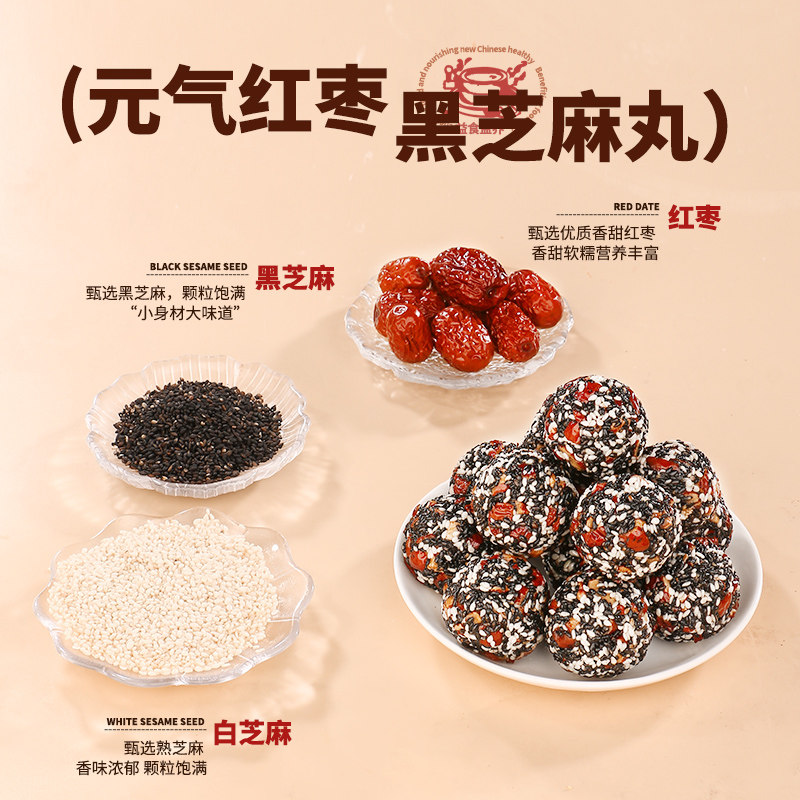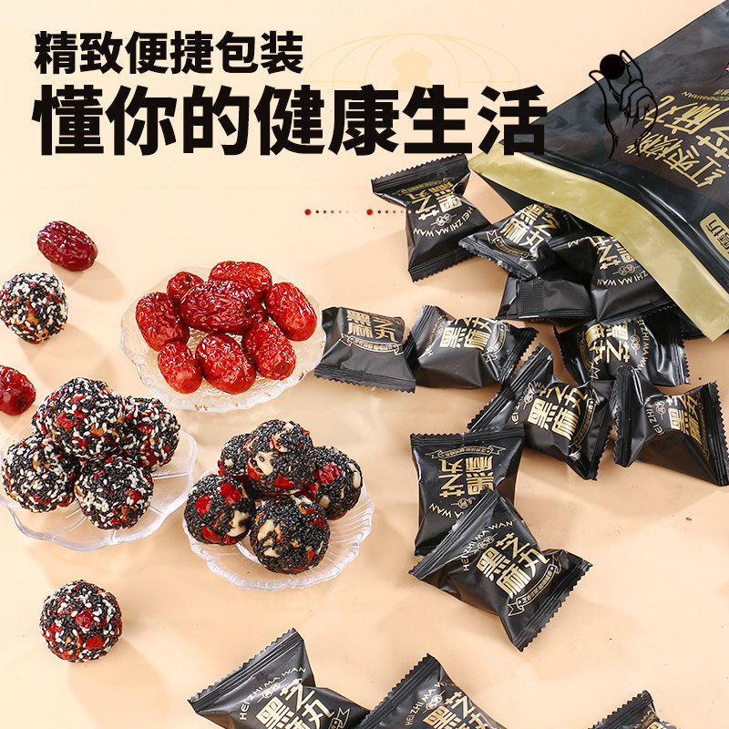 御谷典黑芝麻丸红枣核桃枸杞黑桑葚芝麻球小吃孕妇休闲健康零食品