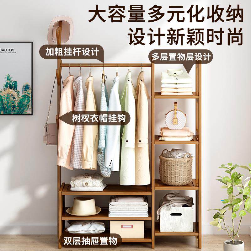 简约衣架卧室出租房简易挂衣架家用置物架实木衣帽架儿童置物架子