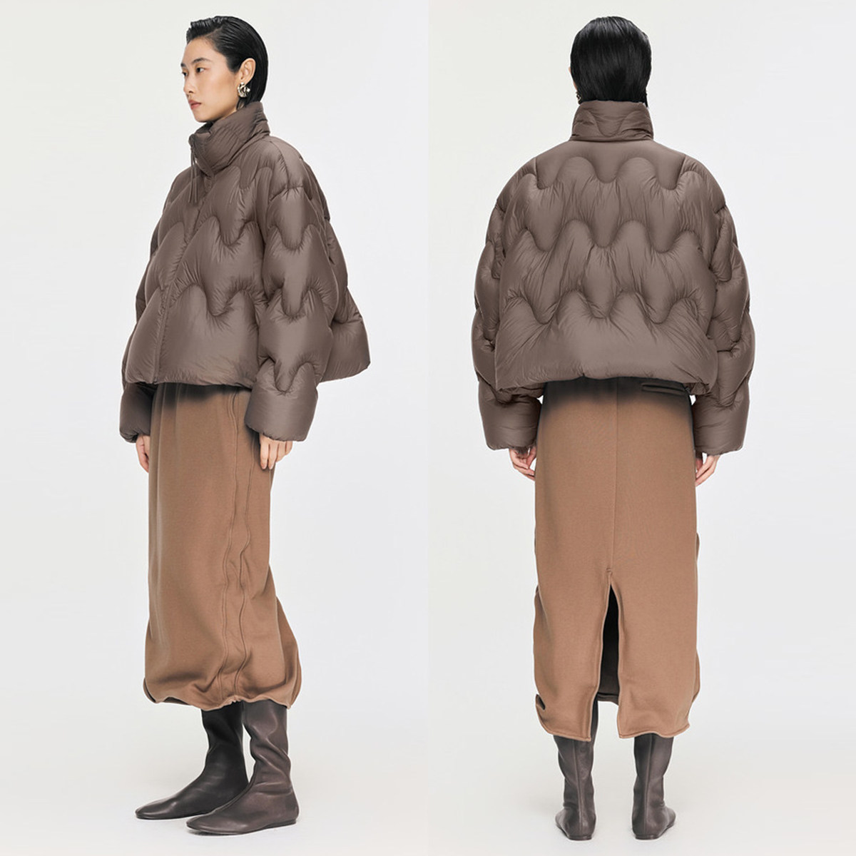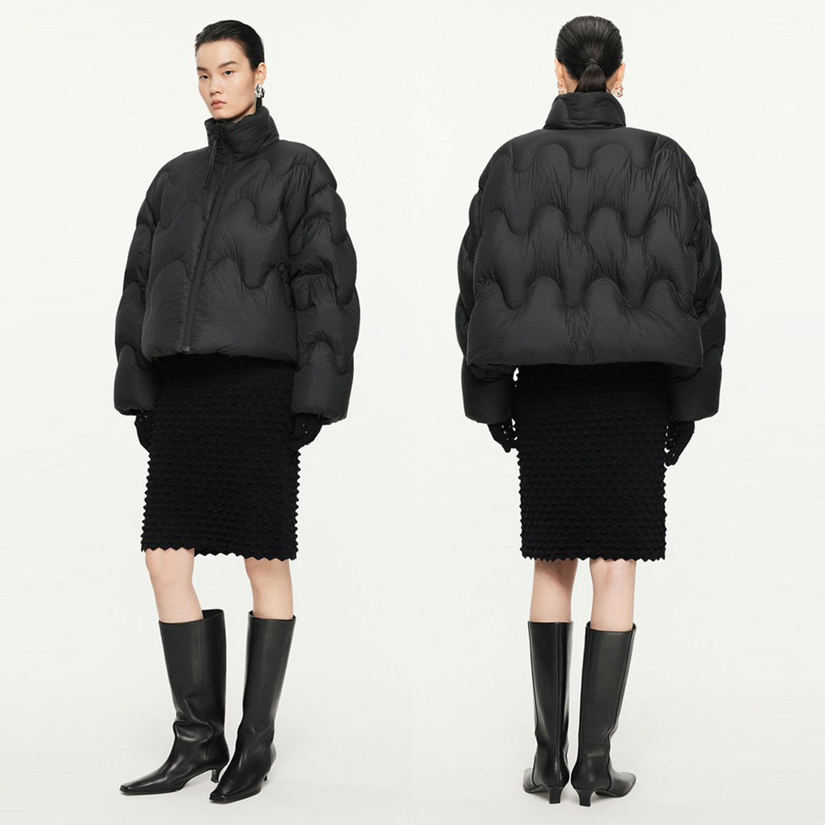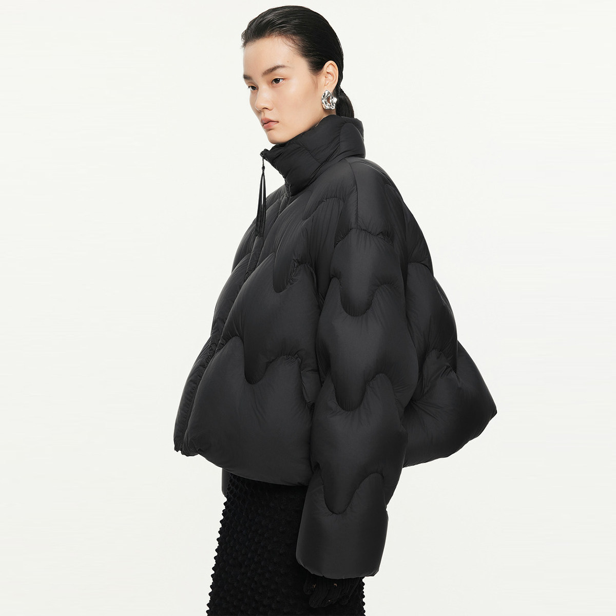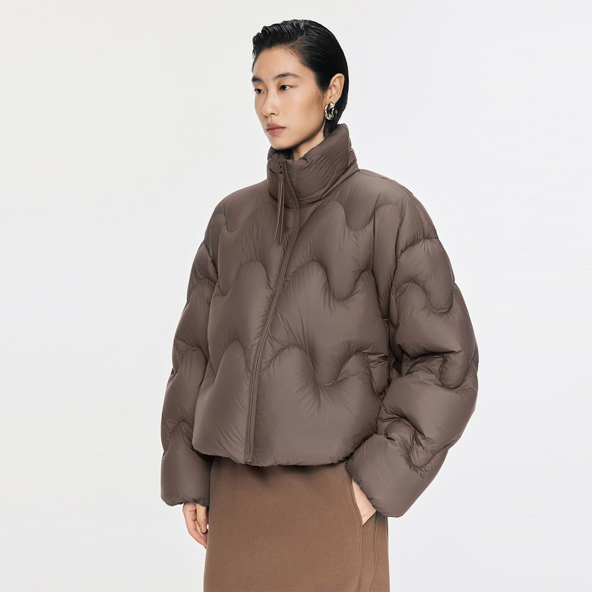 【粉红粉丝专享】2025年冬季新款宽松波浪云感长袖泡芙短款羽绒服