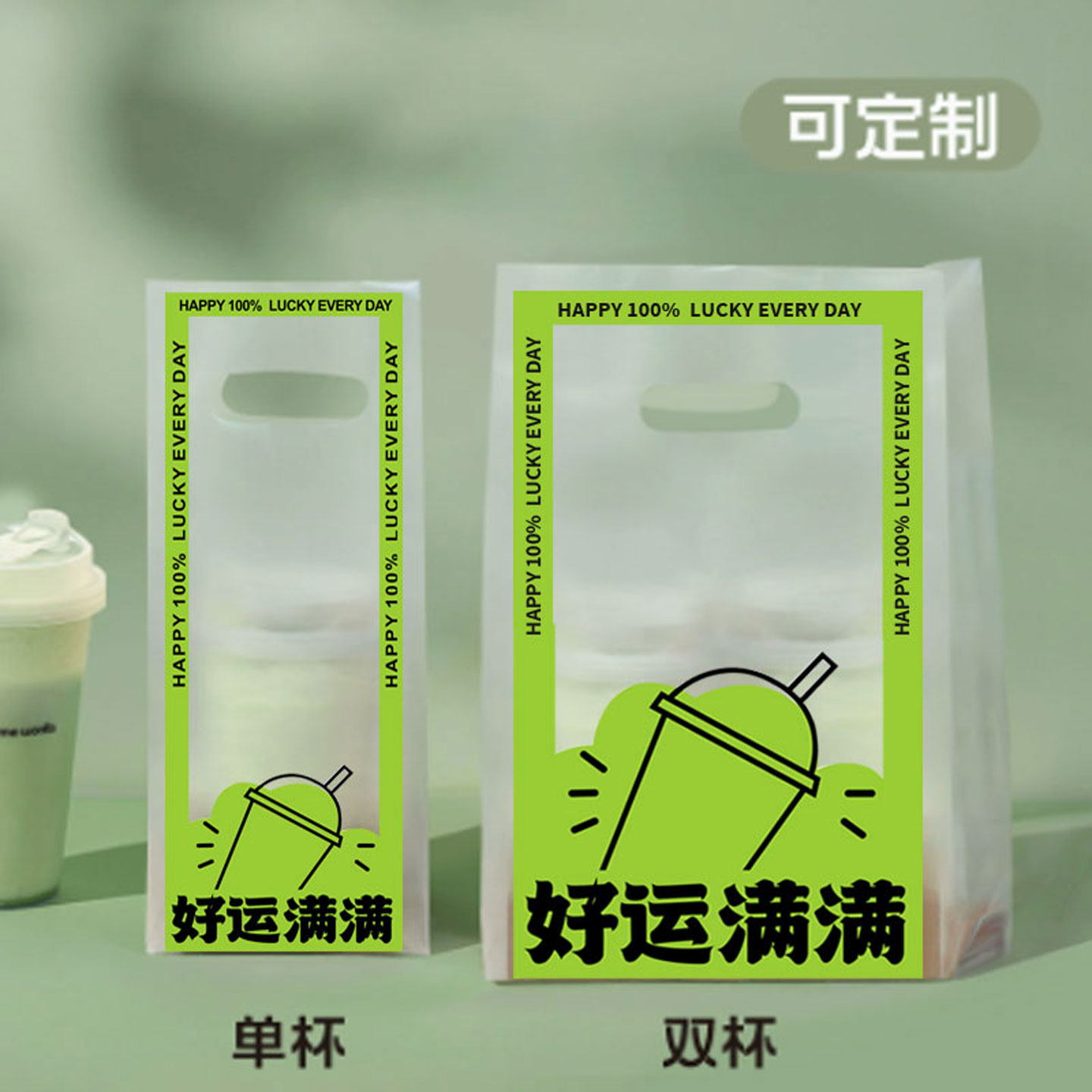 奶茶咖啡打包袋外卖饮品单双杯加厚一次性透明手提袋商用定制logo