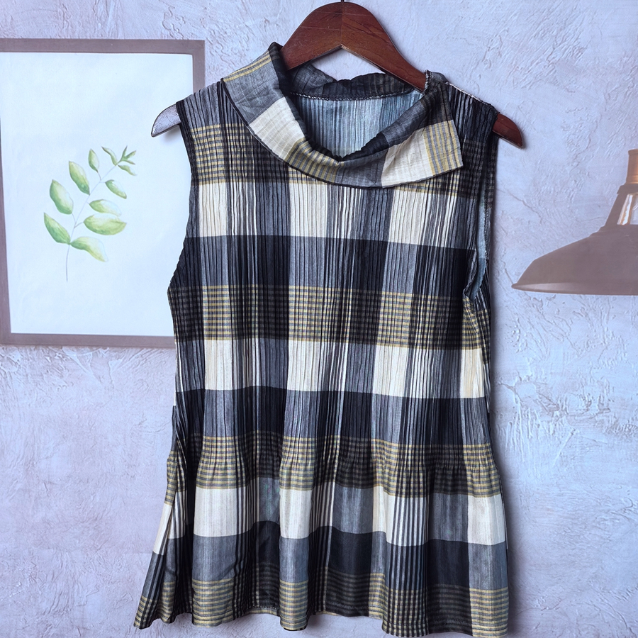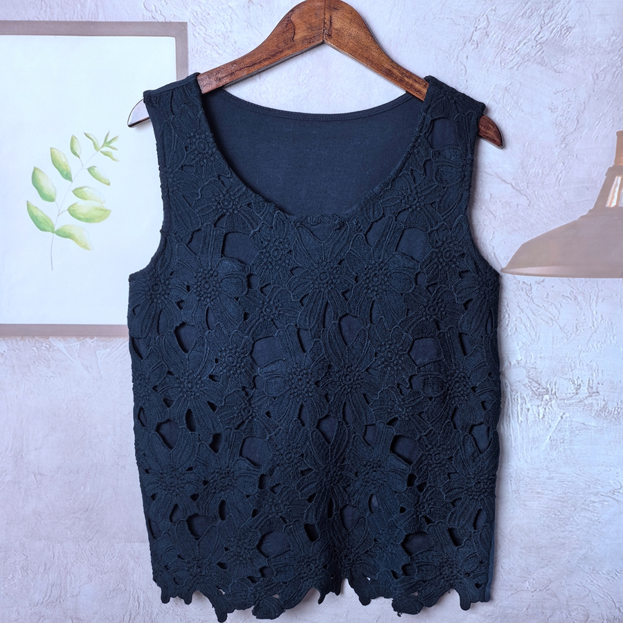 古着Vintage日系文艺范森女复古纯色碎花无袖显瘦遮肚女上衣 Y565