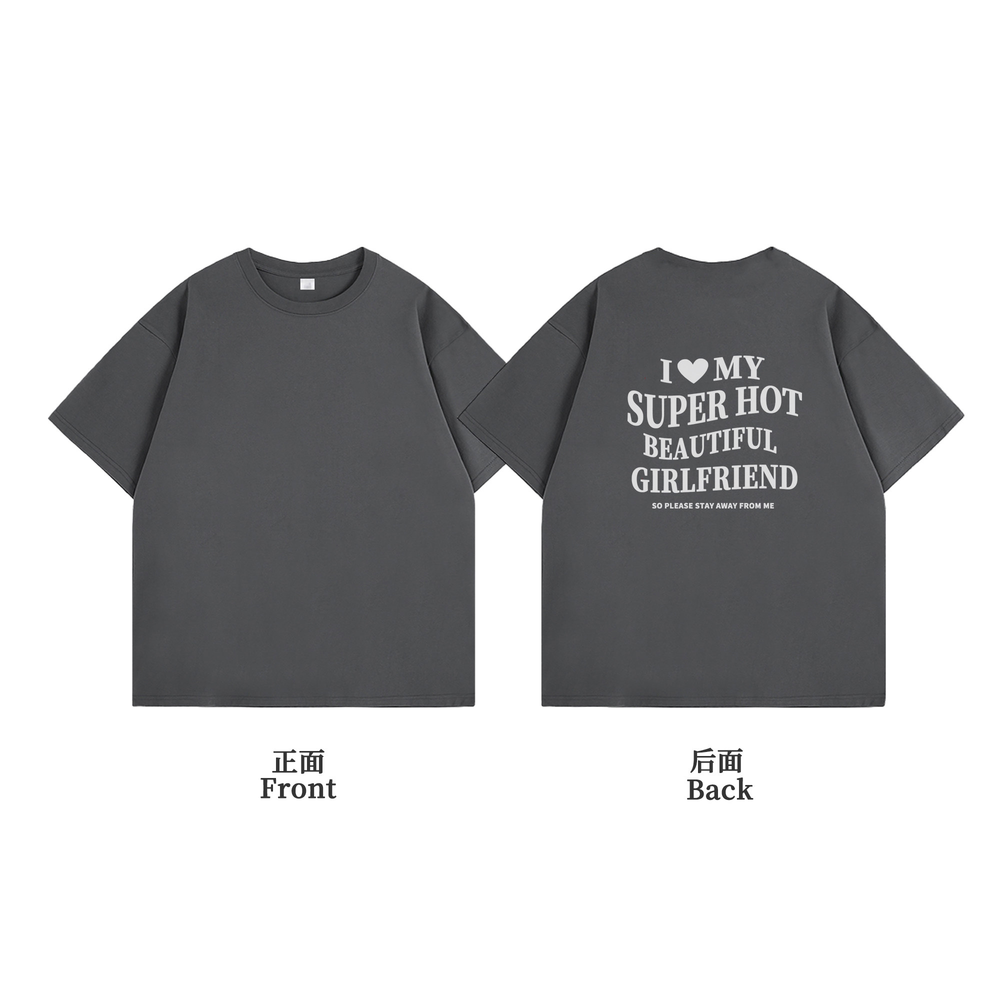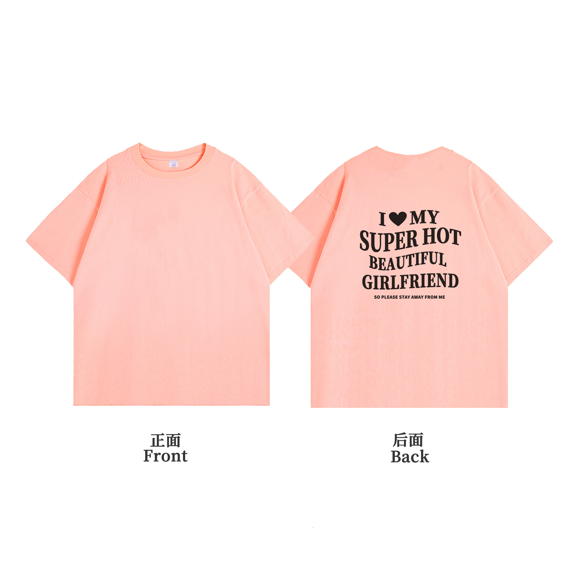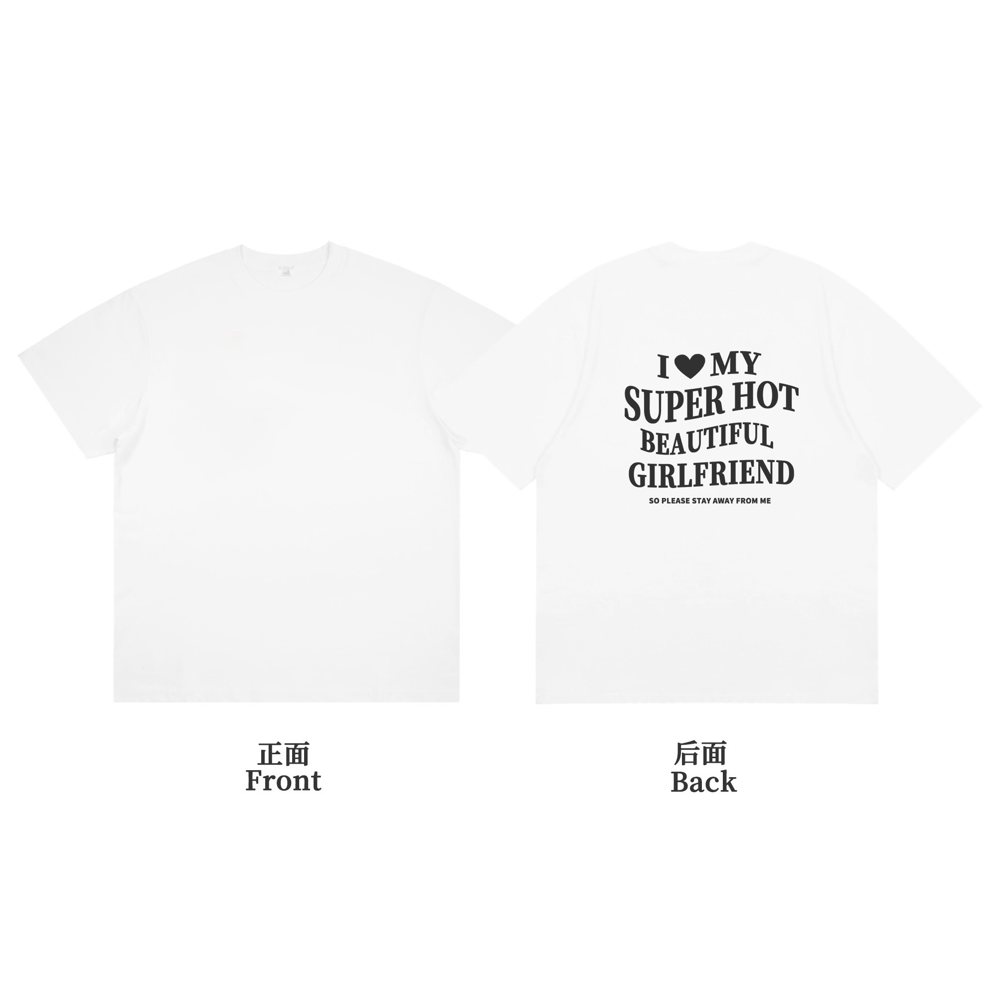I LOVE MY SUPER HOT BEAUTIFUL GIRLFRIEND 趣味美式情侣短袖T恤