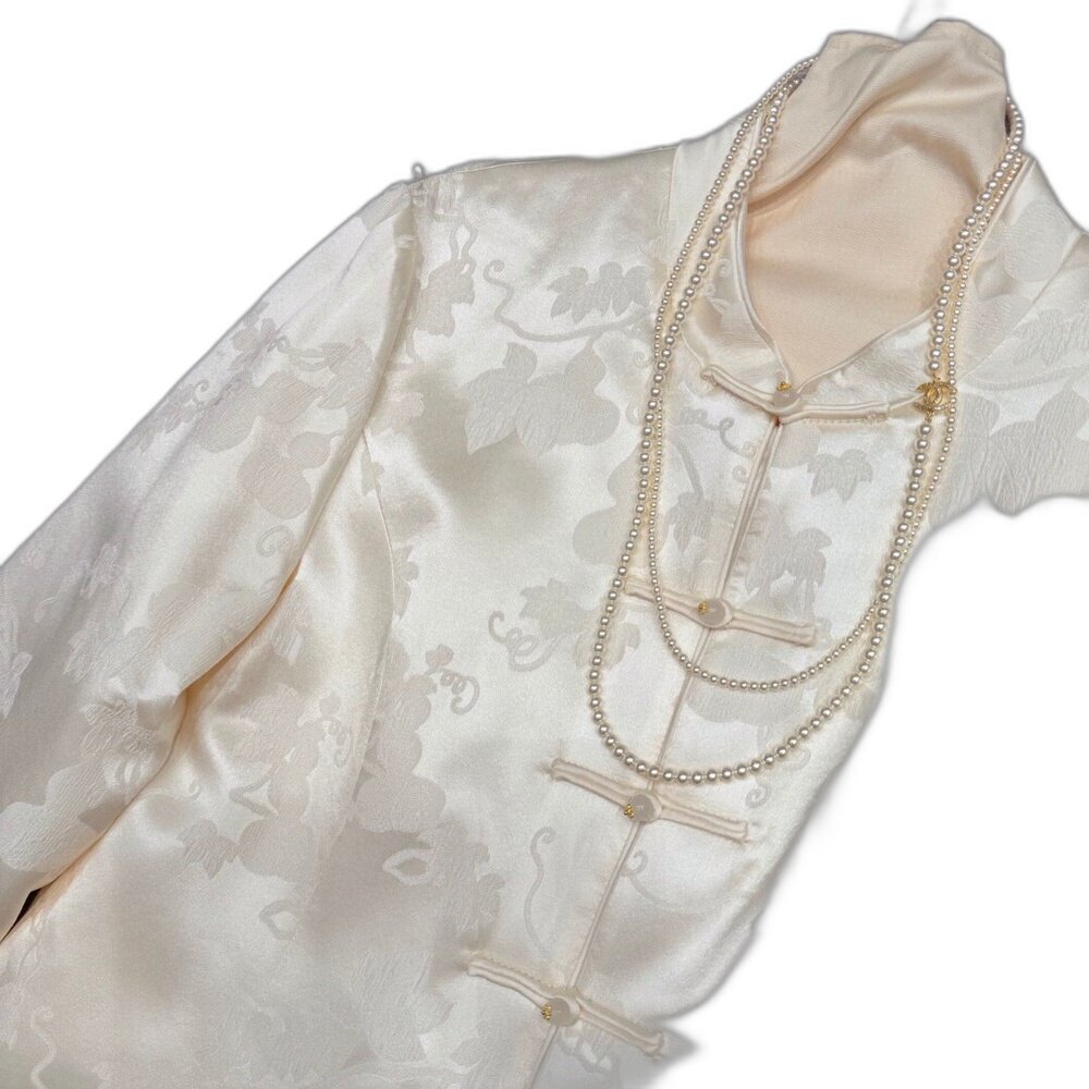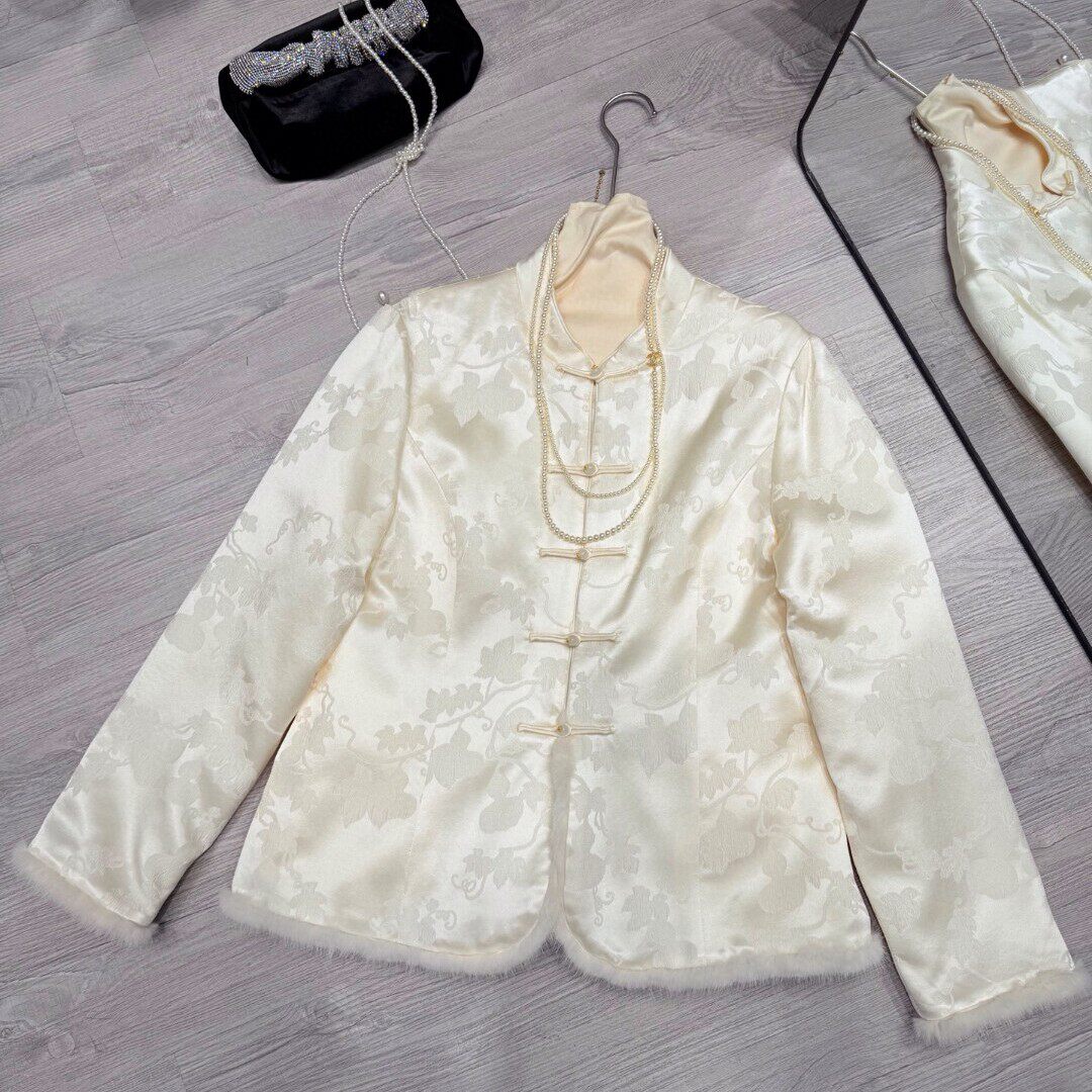 冬上新!桑蚕丝水貂毛提花国风保暖棉服外套